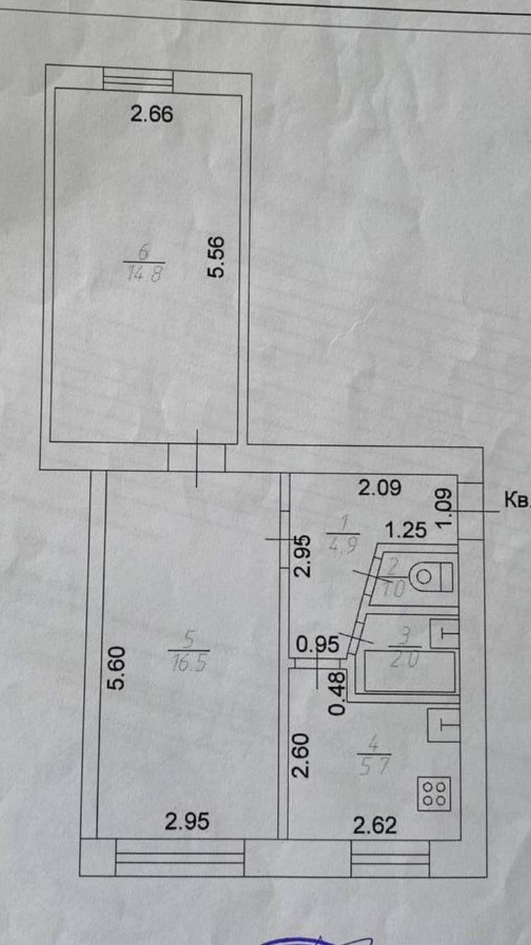 2-комнатная квартира, 45 м2, этаж 1 / 5, на продажу в Твери, проспект Николая Корыткова, 6Б