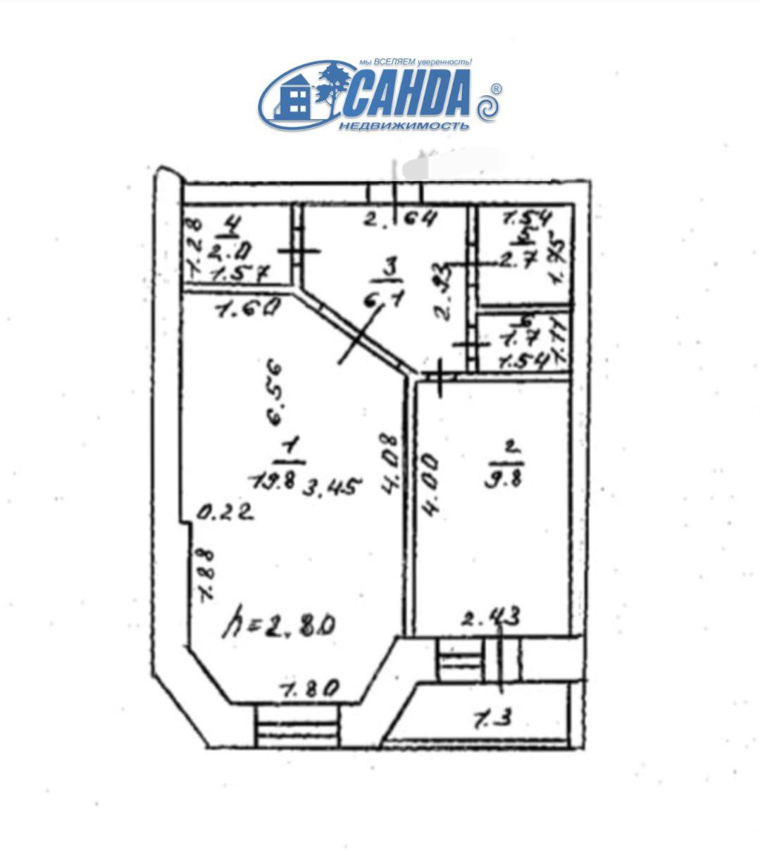 Общая площадь 43.4 м2