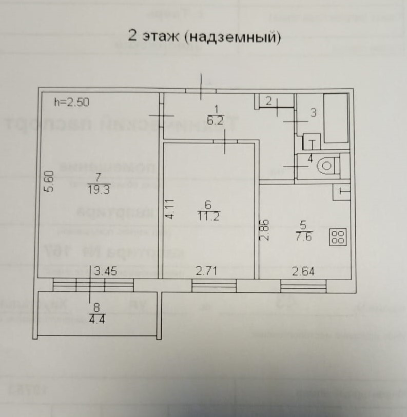 Общая площадь 54 м2