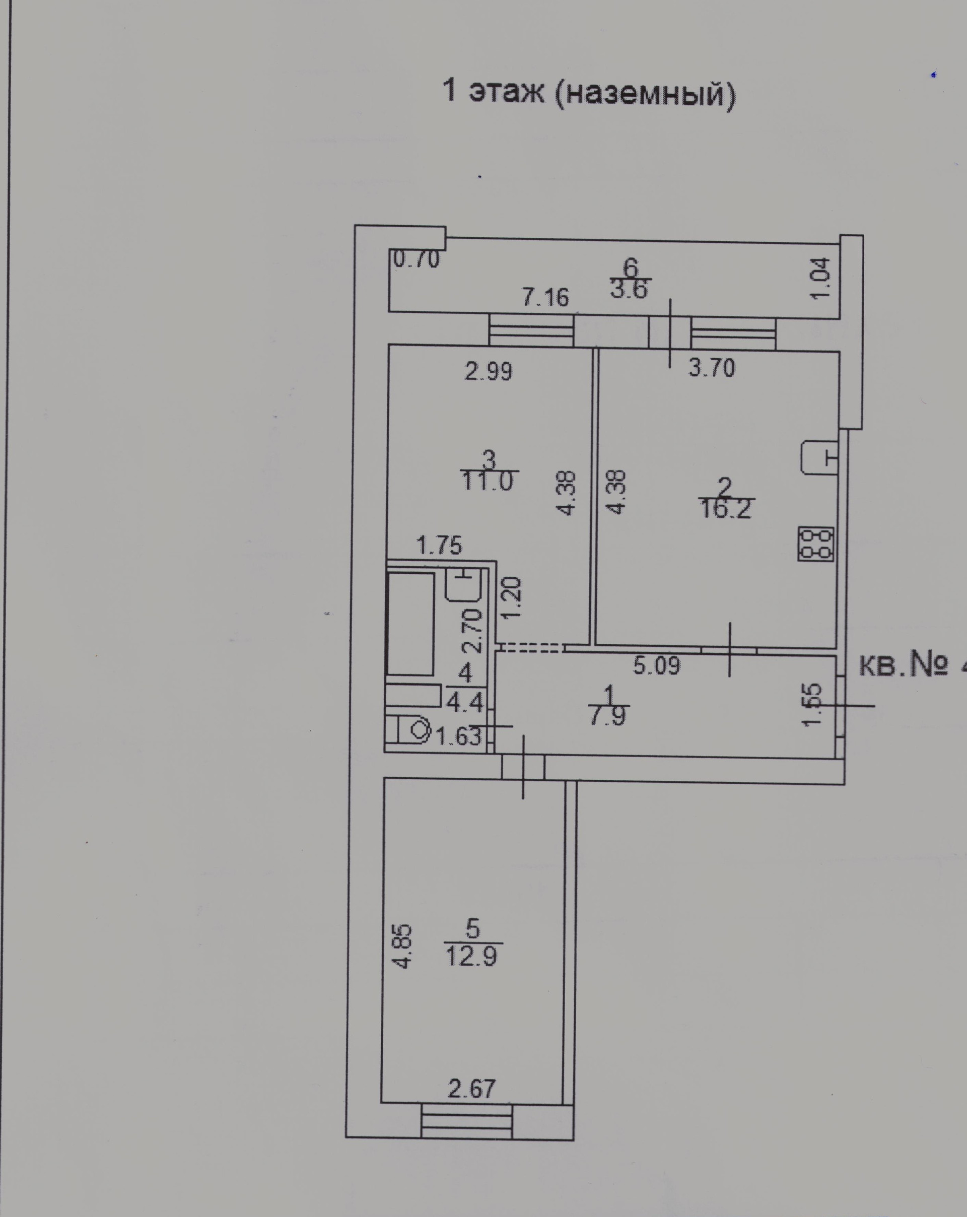 Общая площадь 56 м2