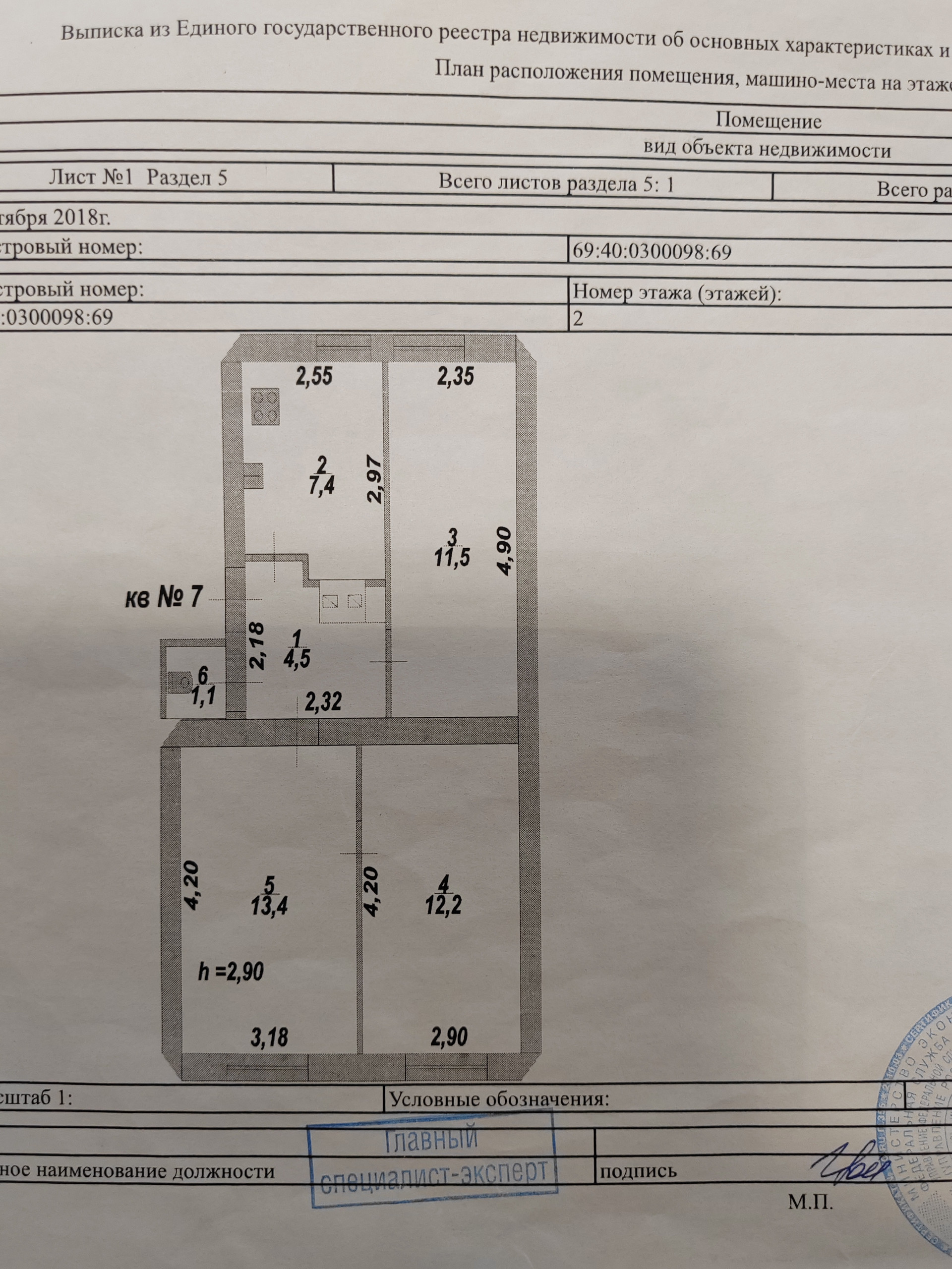 3-комнатная квартира, 50.1 м2, этаж 2 / 2, на продажу в Твери, Инициативная улица, 13