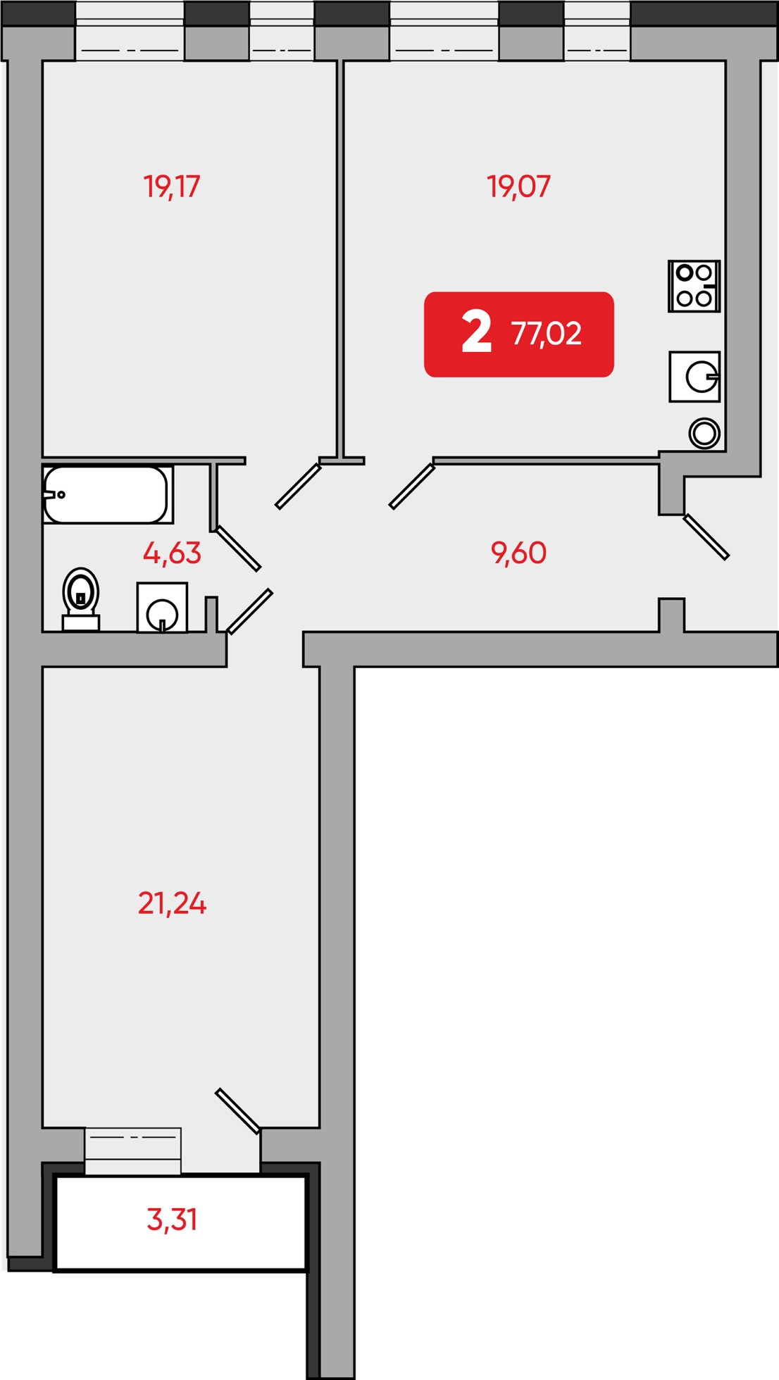 Общая площадь 77 м2