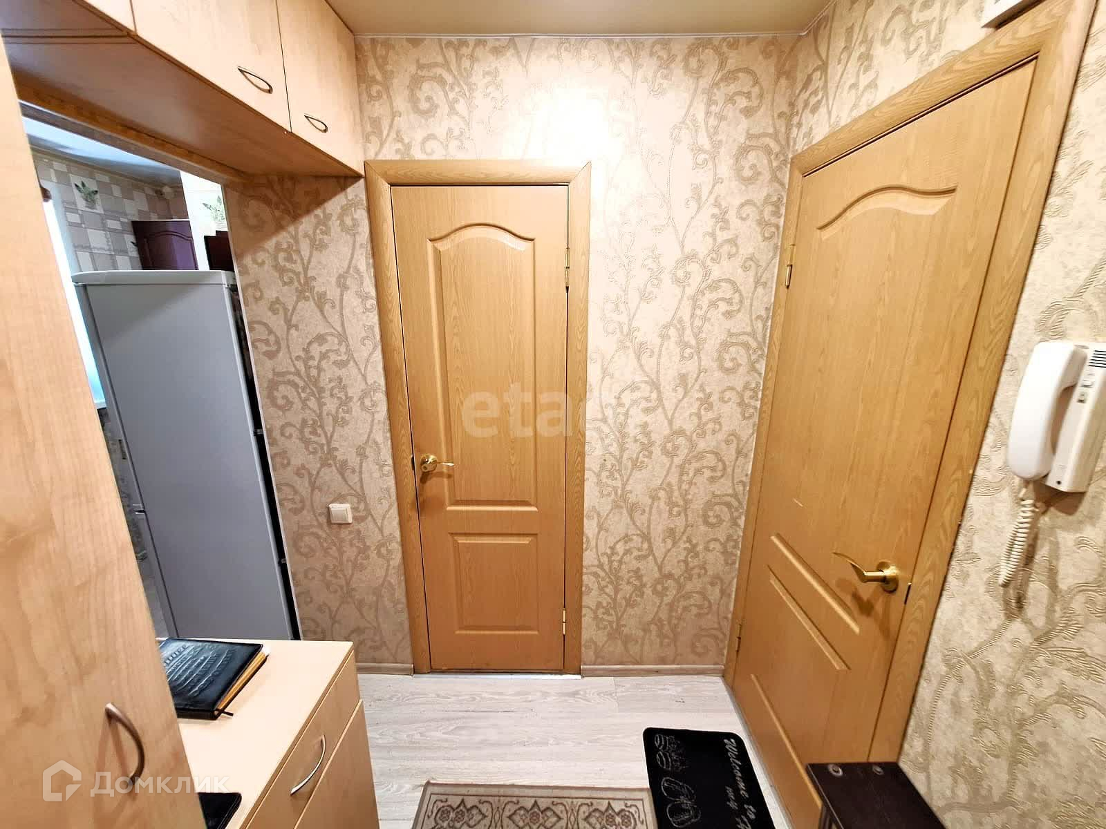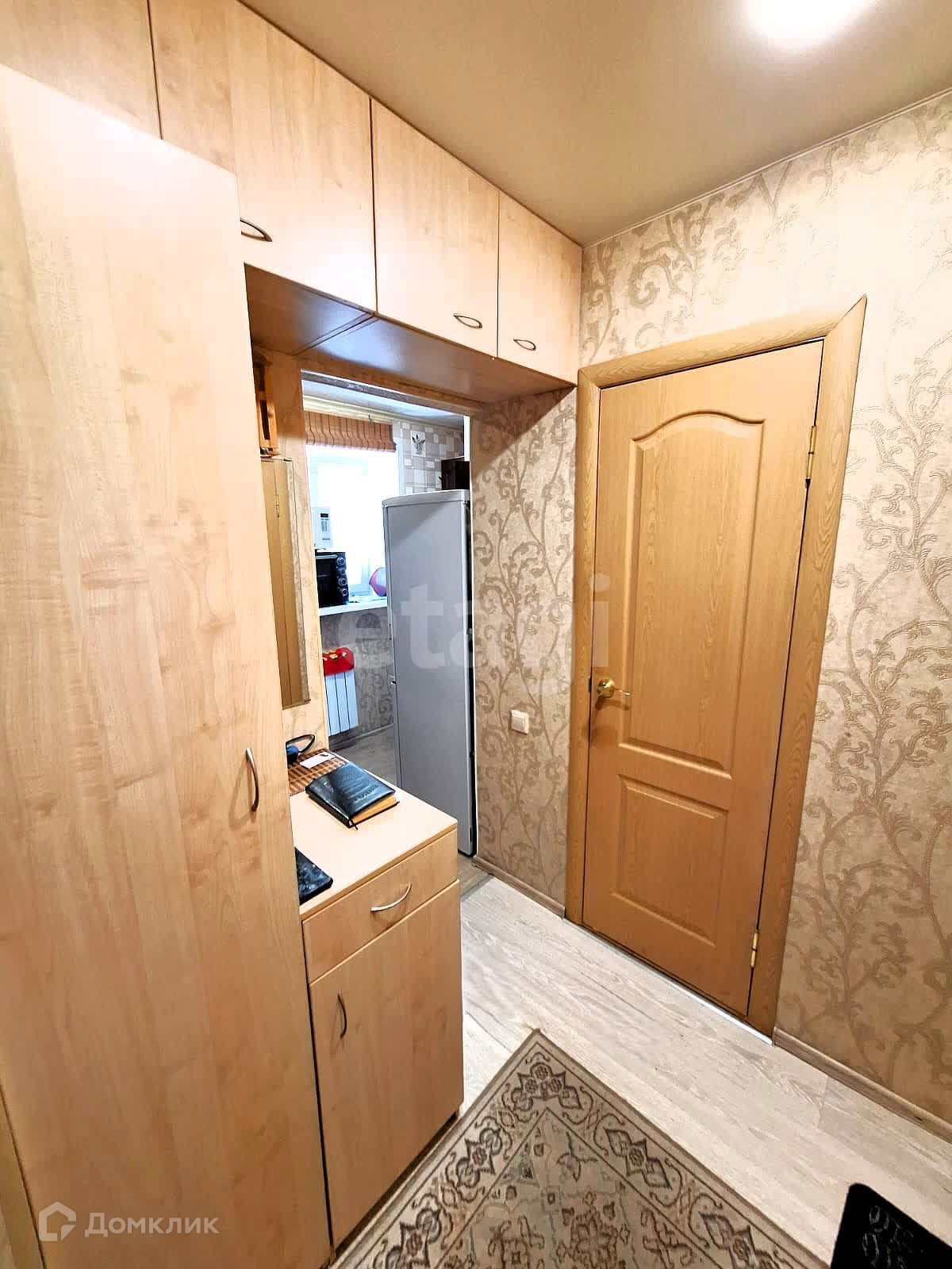 Остается хорошая кухня с встроенной бытовой техникой, в комнате зеркальный шкаф купе, система хранения в прихожей,