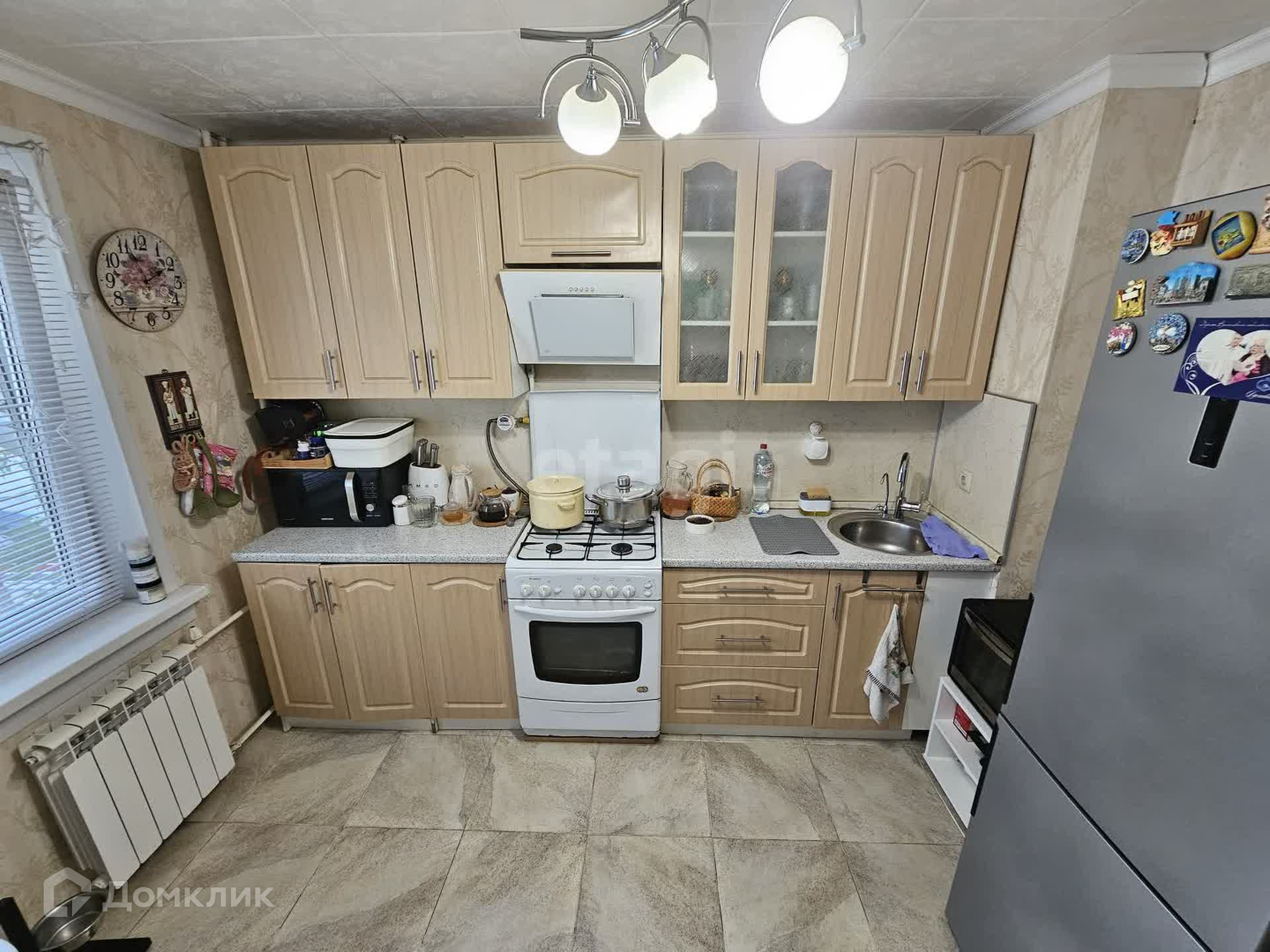 Остается встроенный кухонный гарнитур, газовая плита, вытяжка, частично мебель!
