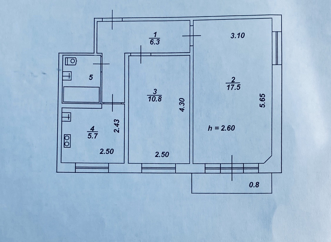 Высота помещений 2.6 м.