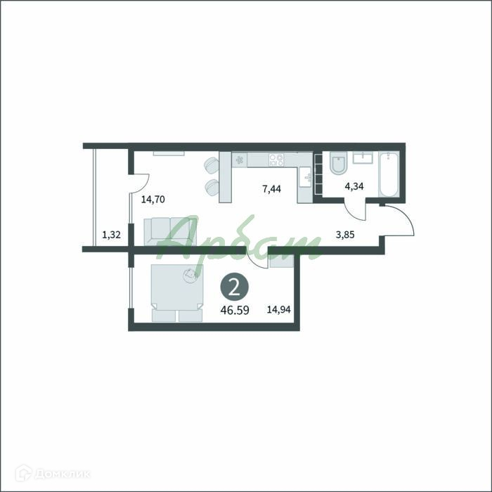 Общая площадь 46.59 м2