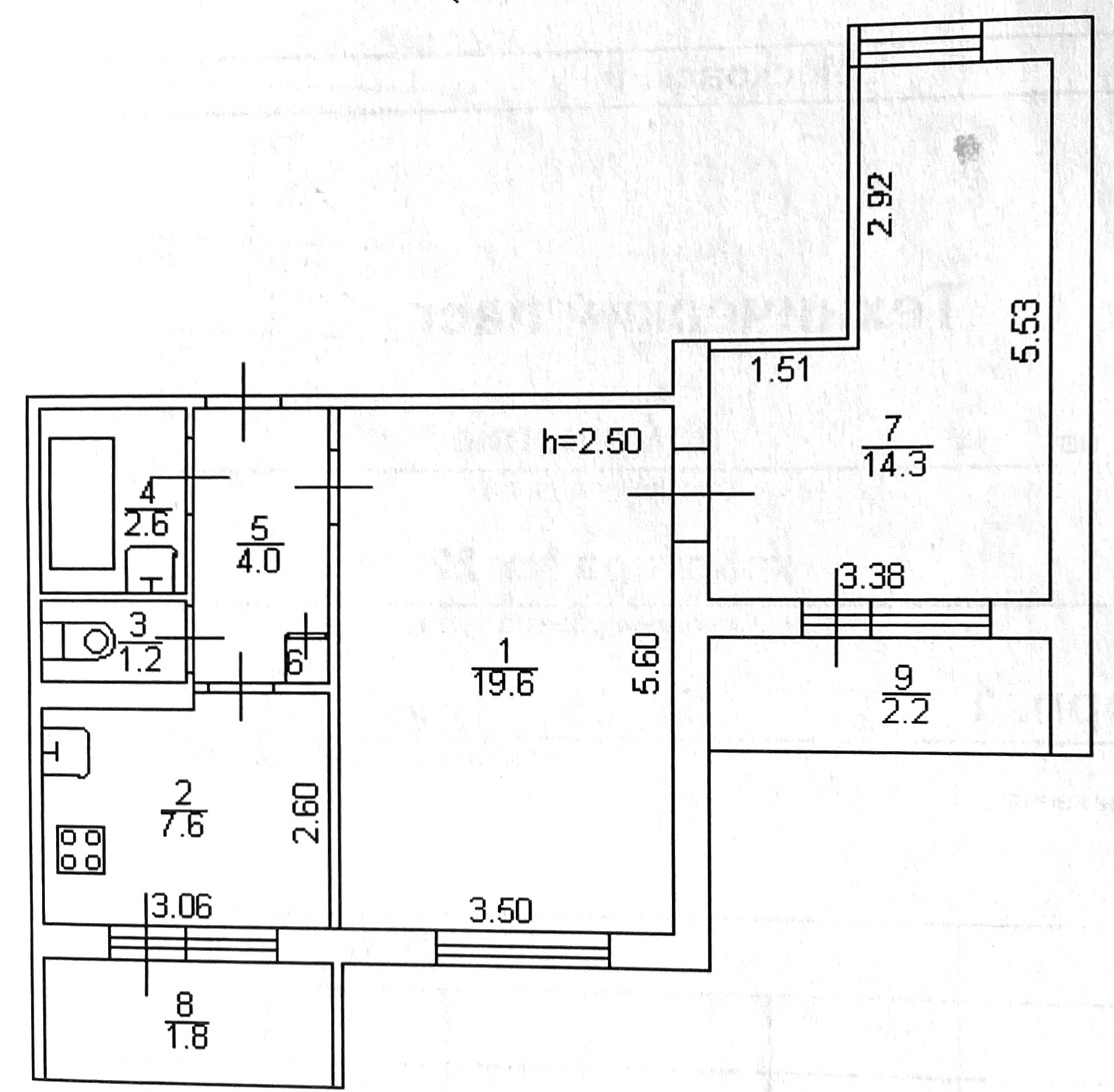 Высота потолков 2.5 м