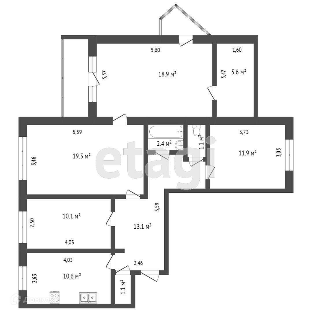 Площадь кухни 10.7 м2