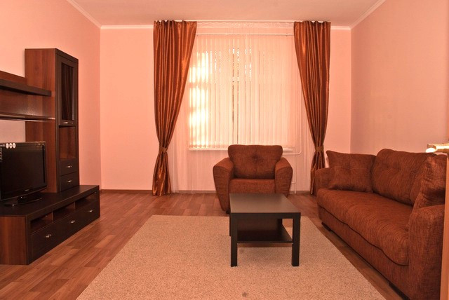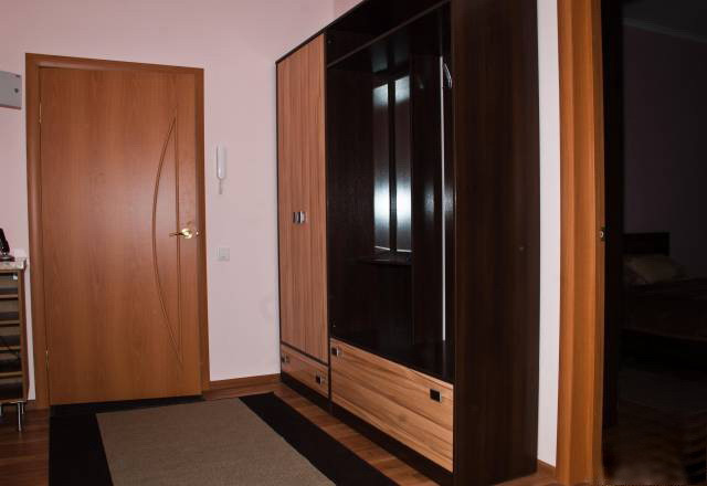 Жилая площадь составляет 41,5 квадратных метров (27 м.кв. + 14,5 м.кв.), холл 10,2 м.кв., санузел 4,7 м.кв., а кухня занимает 12,2 квадратных метров, что позволяет комфортно разместиться всей семье. Газовая плита, духовка, встроенная кухонная мебель, вытяжка, холодильник, микроволновка. Интернет, ТВ, полный комплект комнатной мебели.