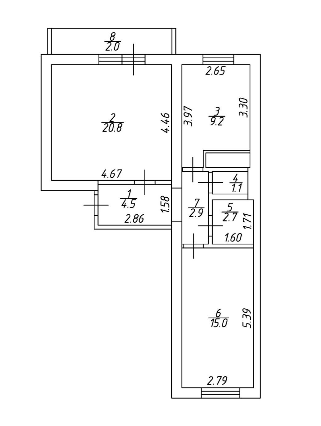 Общая площадь 60.2 м2