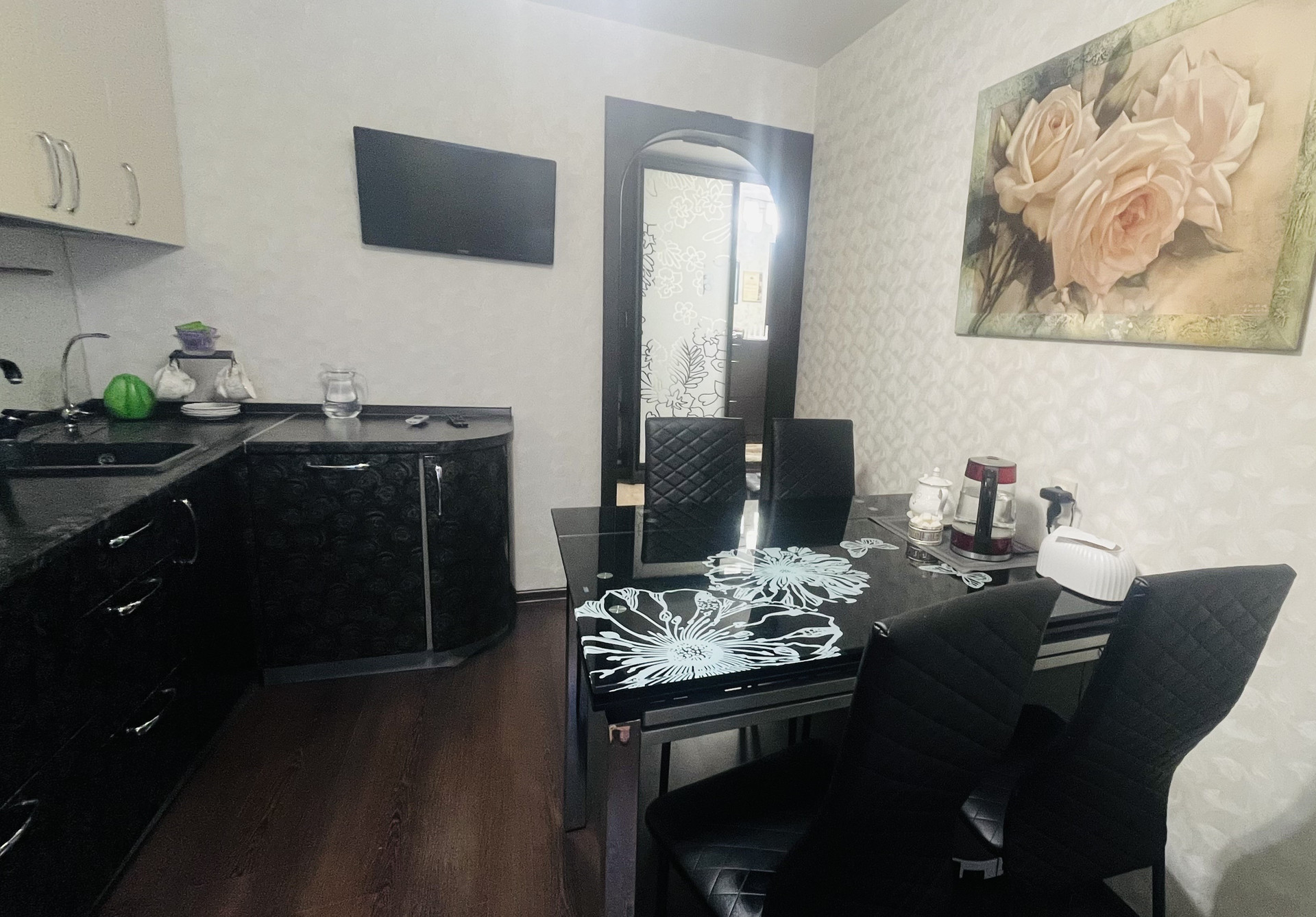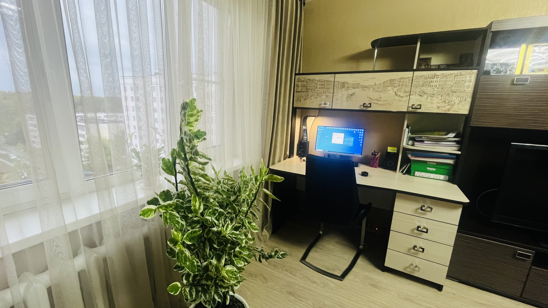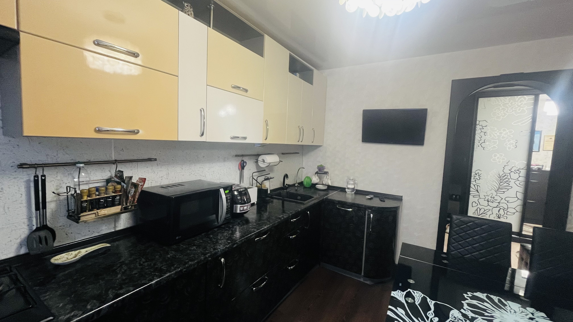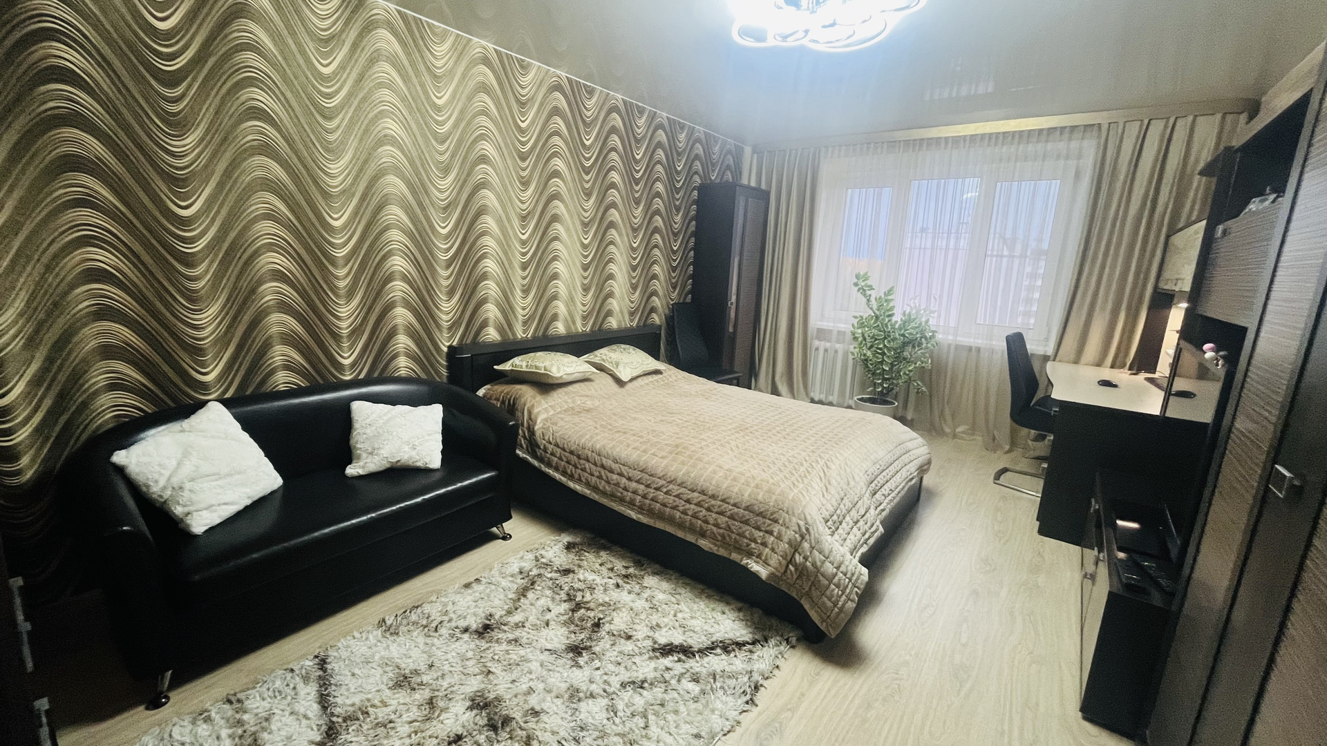 В квартире сделан качественный ремонт (натяжные потолки, ламинат, кафель, установлены окна ПВХ, счетчики приборов учета).