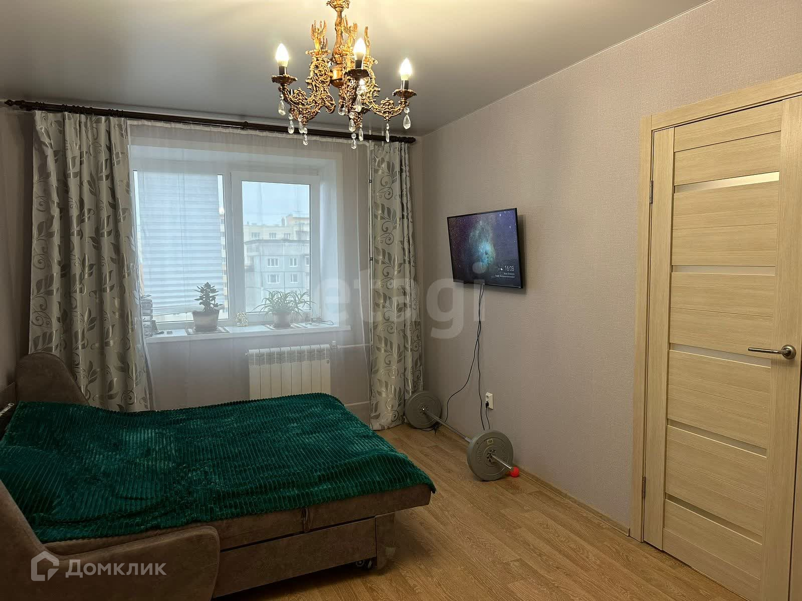 пластиковые, выходят на улицу. Возле дома стоят новые детские площадки, двор ухоженный. В квартире остается вся мебель, вся техника, кроме телевизора. Обременений нет, один собственник, который прописан в квартире.