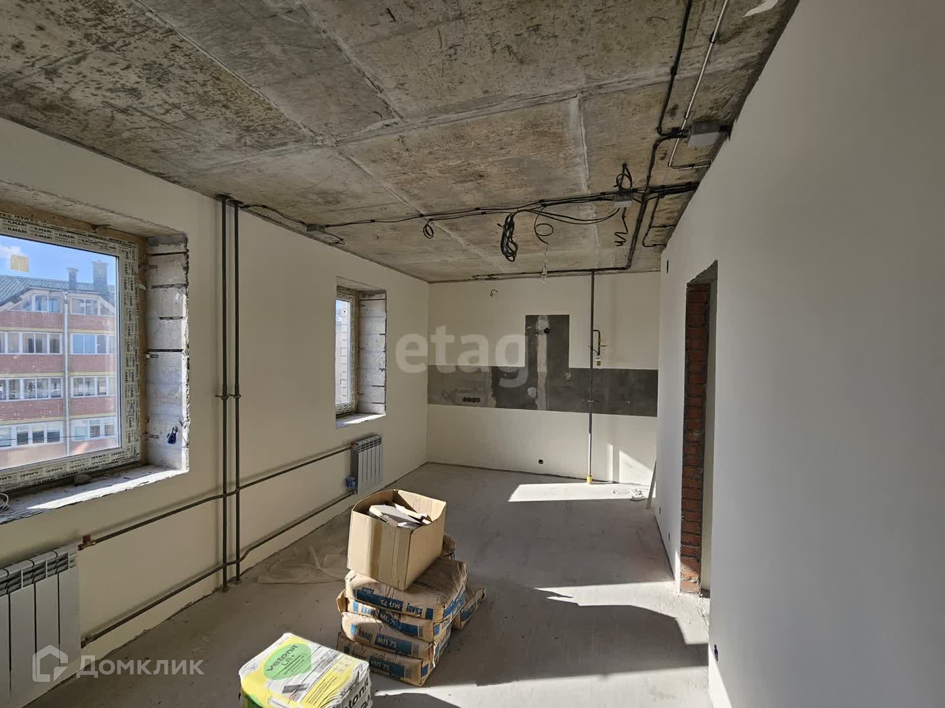 Под чистовую отделку, выполнены разводка электричества, стяжка пола, выровнены стены, заменена входная дверь!