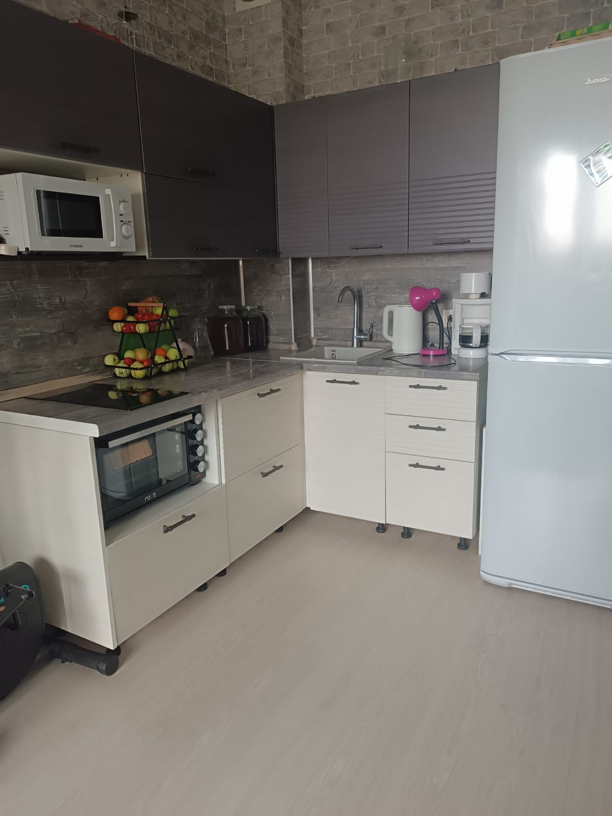 Квартира теплая, остаётся полноценная кухня, натяжные потолки по всей квартире. В прихожей керамогранит на полу, в ванной плитка, в комнате ламинат.