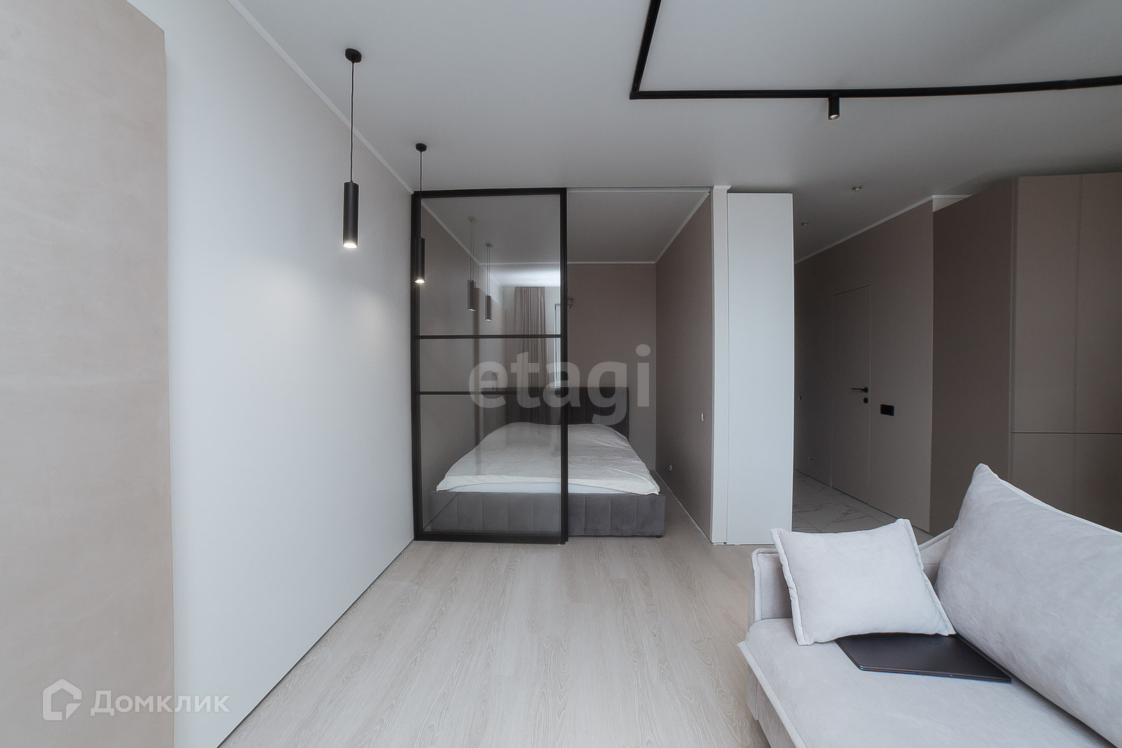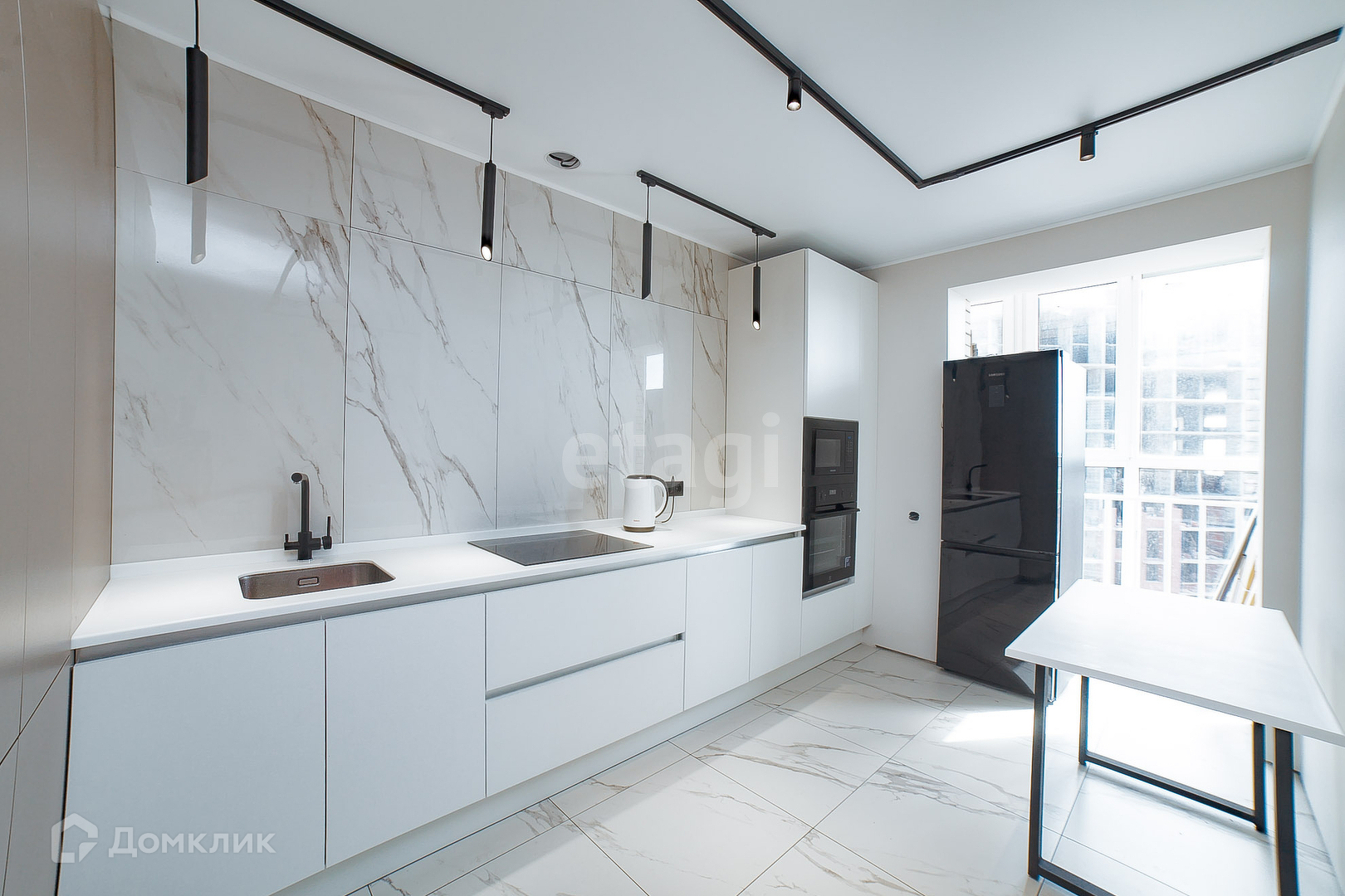 При продаже остается кухня, кровать, холодильник, встроенная кухонная техника (посудомоечная машина, СВЧ печь, духовка, варочная панель)