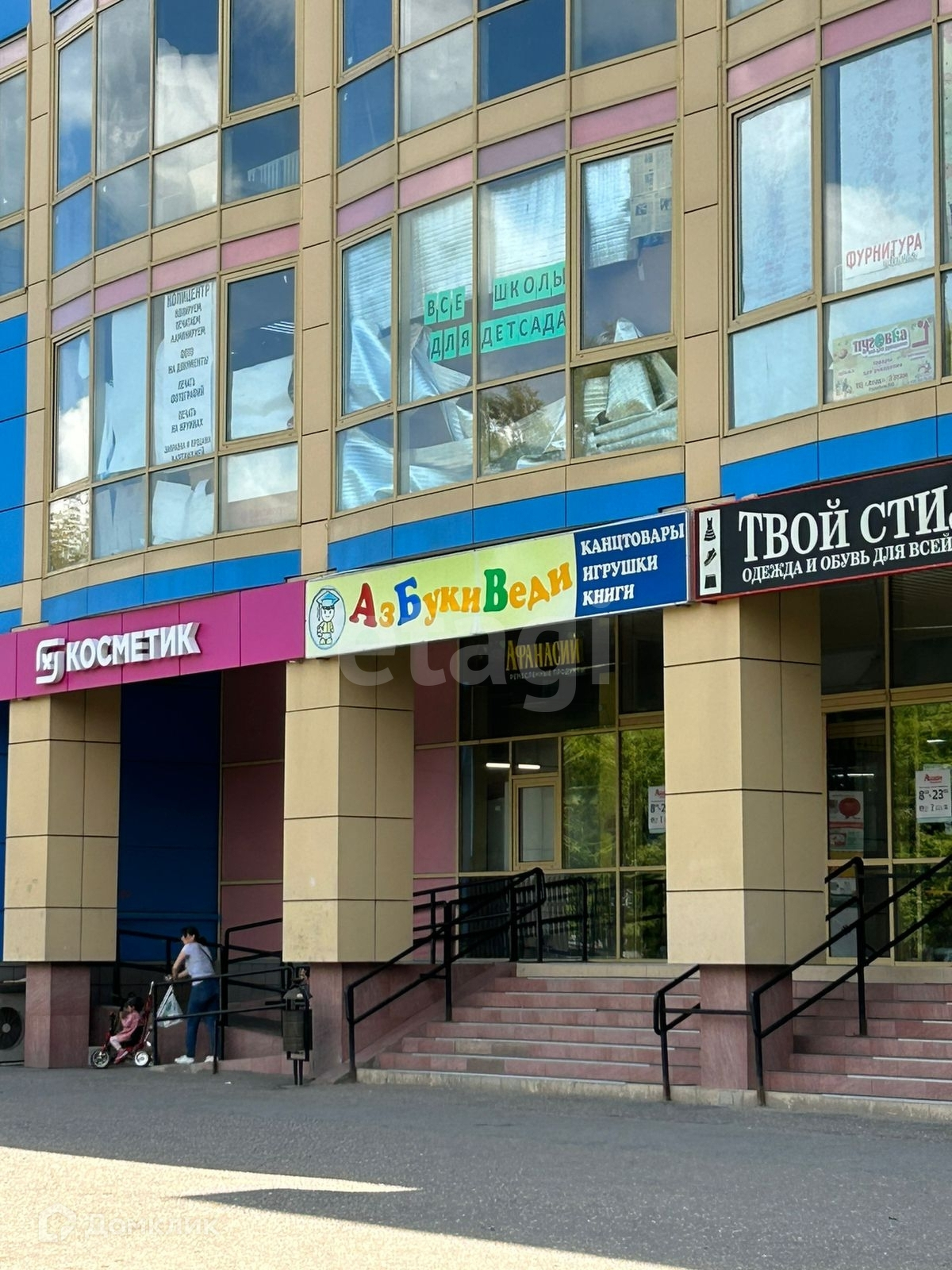 Здание торгового центра находится в хорошо развитой части города. Рядом с Торговым Центром расположен крупный сетевой магазин Пятёрочка, в самом ТЦ расположен крупный супермаркет АШАН, магазин FIX PRICE, Автохимия, Мебель и много других, что обеспечивает большую проходимость.