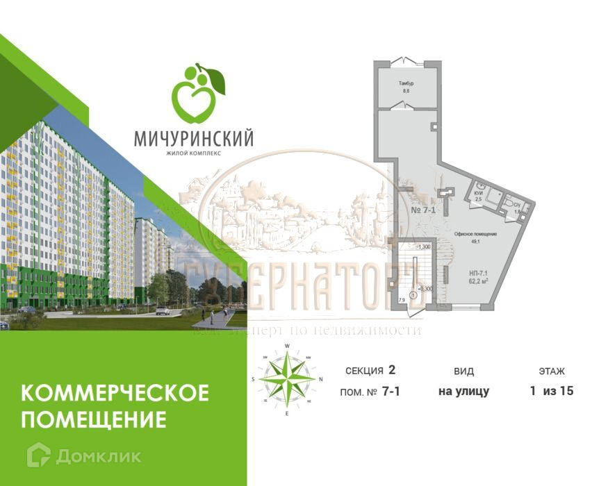 В продаже коммерческое помещение в современном и престижном ЖК Мичуринский.