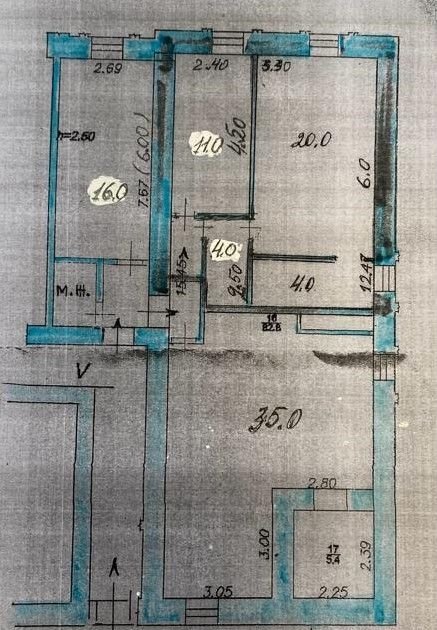Помещение находится в полуцокольном этаже с окнами, общей площадью 108,8 кв.м. состоит из четырех кабинетов и общего санузла. В каждом кабинете подведена вода