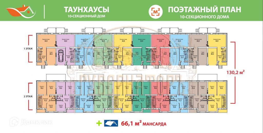 На цветной планировке 10 с лево на право