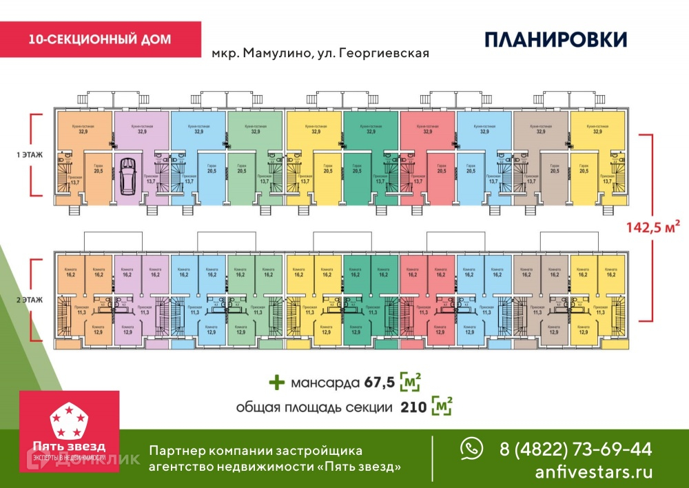 Трехэтажный таунхаус на участке 2 сотки в мкр. Мамулино, на улице Георгиевская. Площадь секции 210 м².