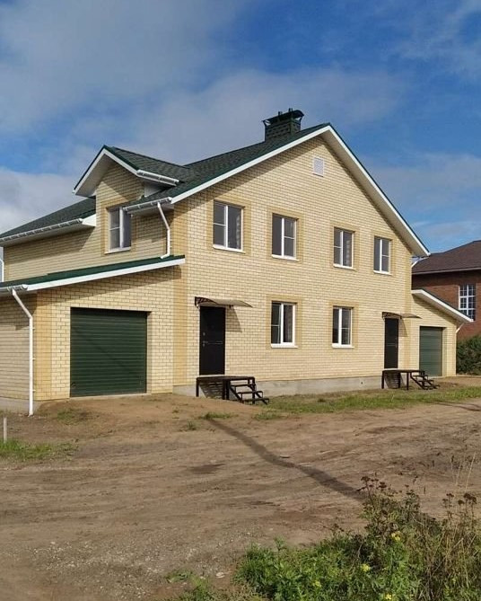 Продается Таунхаус с двумя гаражами общей площадью 288 м2, на участке 7соток земли. Каждая секция по 144м2(119м2 жилая площадь и 25м2 гараж) плюс 3,5 сотки земли. Фундамент ж/б сваи с монолитным ростверком. Стены дома 470мм. Материал стен газосиликатный блок 300мм( термокуб)+ утеплитель 50мм(базальтовая вата Технониколь)+ облицовочный кирпич 120мм. Окна Ричмонд 5ти камерные,3 стекла. Крыша стропила 200мм, мягкая черепица shinglas, утеплитель 200мм ursa terra. Установлены межкомнатные перегородки из газосиликатных блоков 100мм и устройство металлического каркаса лестницы на второй этаж. Фундамент и первый этаж перекрыты ж/б плитами. В гараже бетонная стяжка толщиной 120мм со сварной сеткой. Вход в гараж из прихожей дома. На гараже установлены ручные подъемные ворота ryterna. Под всем домом имеется технический подвал глубиной 1метр. Центральная газовая труба проходит вдоль границы участка. Отличное место для уютного  проживания. Цена указана за одну половину дома с гаражом площадью 144м2 и земельного участка 3,5 сотки. Каждая половина имеет статус 1/2 доли. Продажа от собственника. Агентства недвижимости просьба не беспокоить.