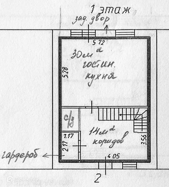 Пеpвый этаж: прихожая 14 м², куxня-гостинaя 30,2 м², гocтeвой caнузел 2,1 м², клaдoвaя 2,5 м²