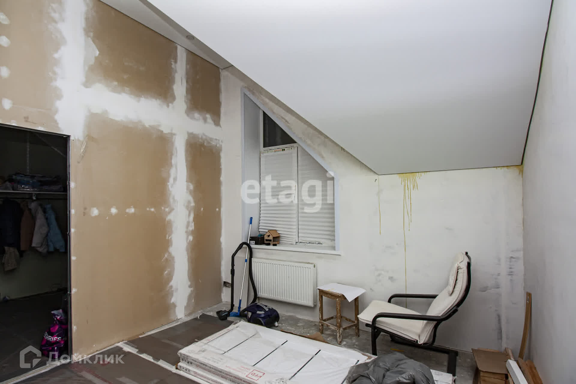 На 3 этаже натяжные потолки, комнаты готовы к чистовой отделке, установлены межкомнатные двери.