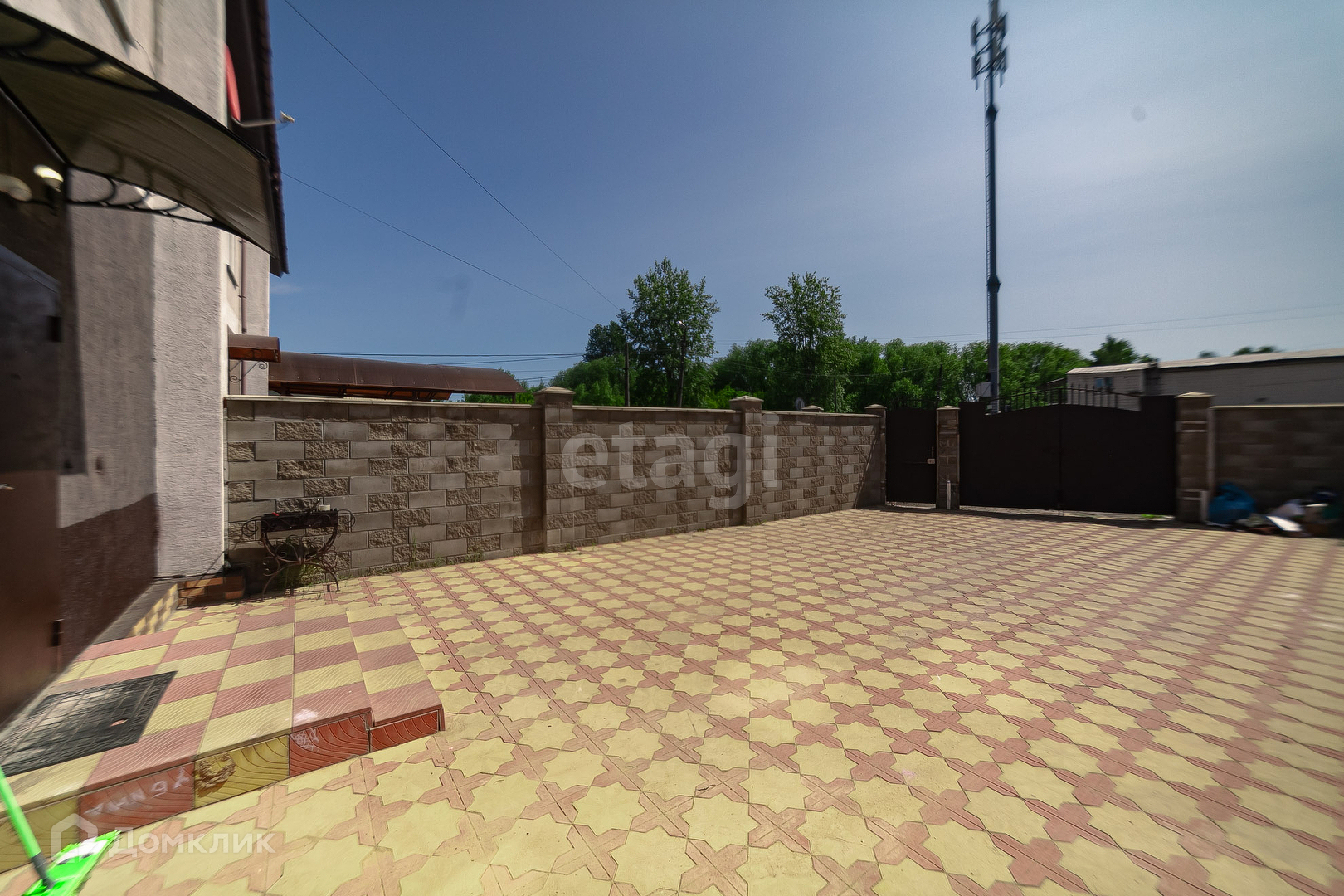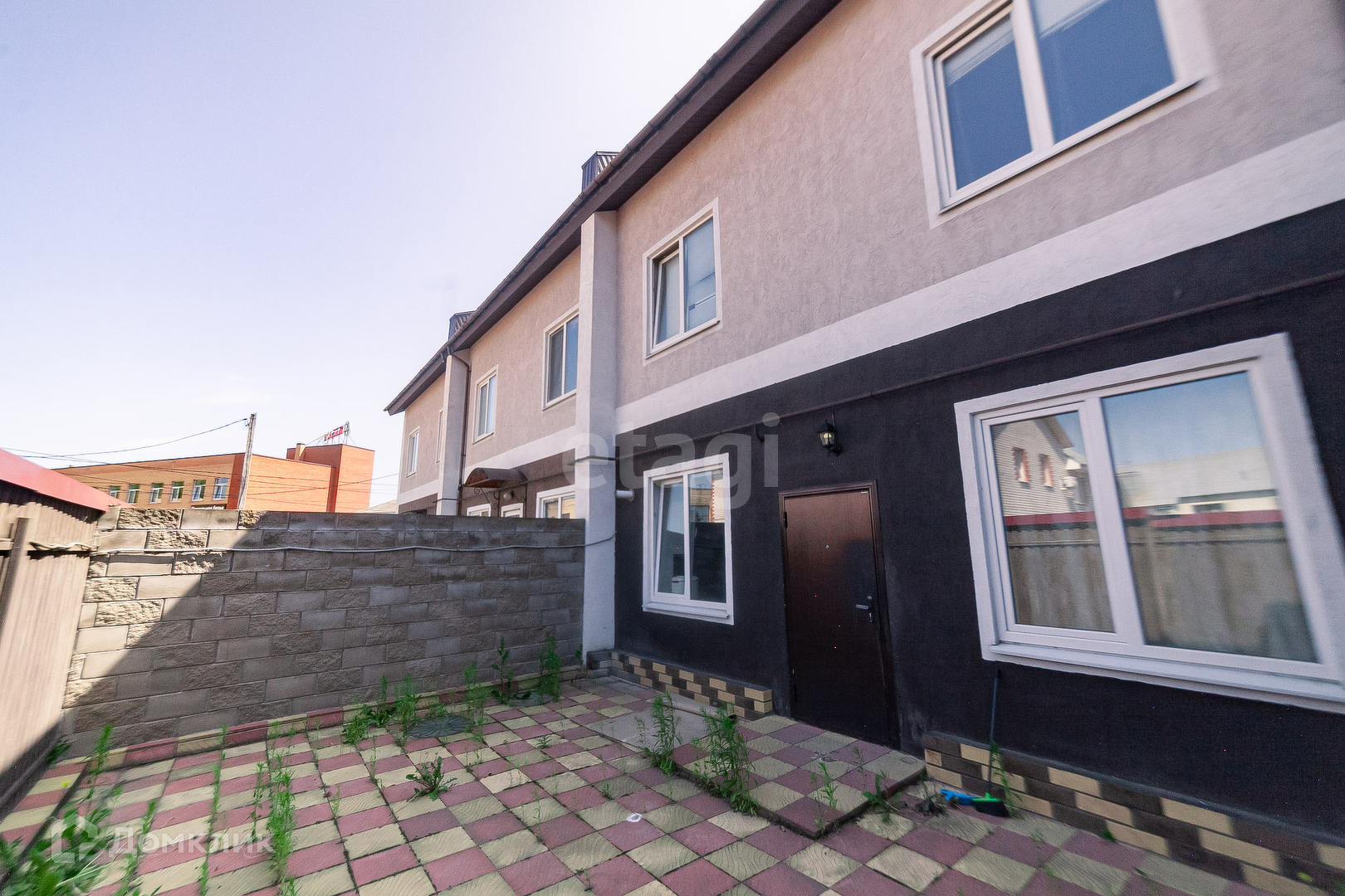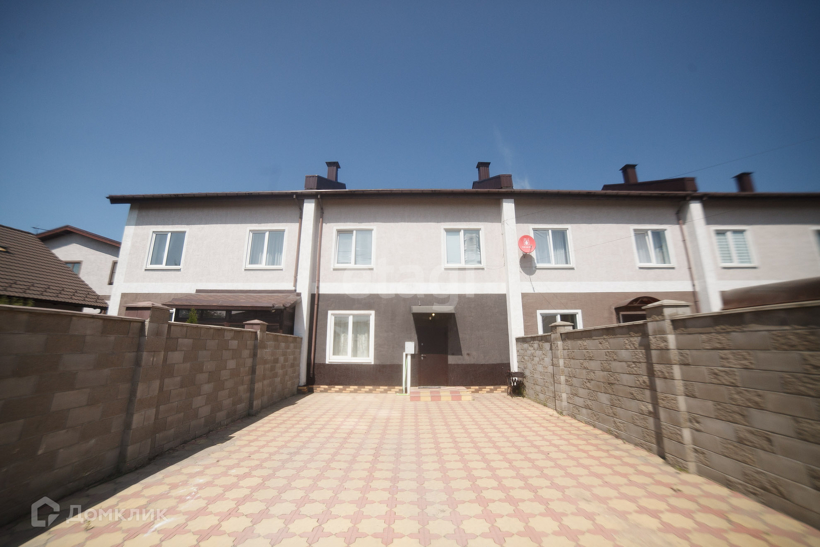 Трёхэтажный коттедж общей площадью 165 м² 2016 года постройки на участке 1,9 соток (ИЖС). есть зона парковки. Территория выложена плиткой. Задний двор в брусчатке.