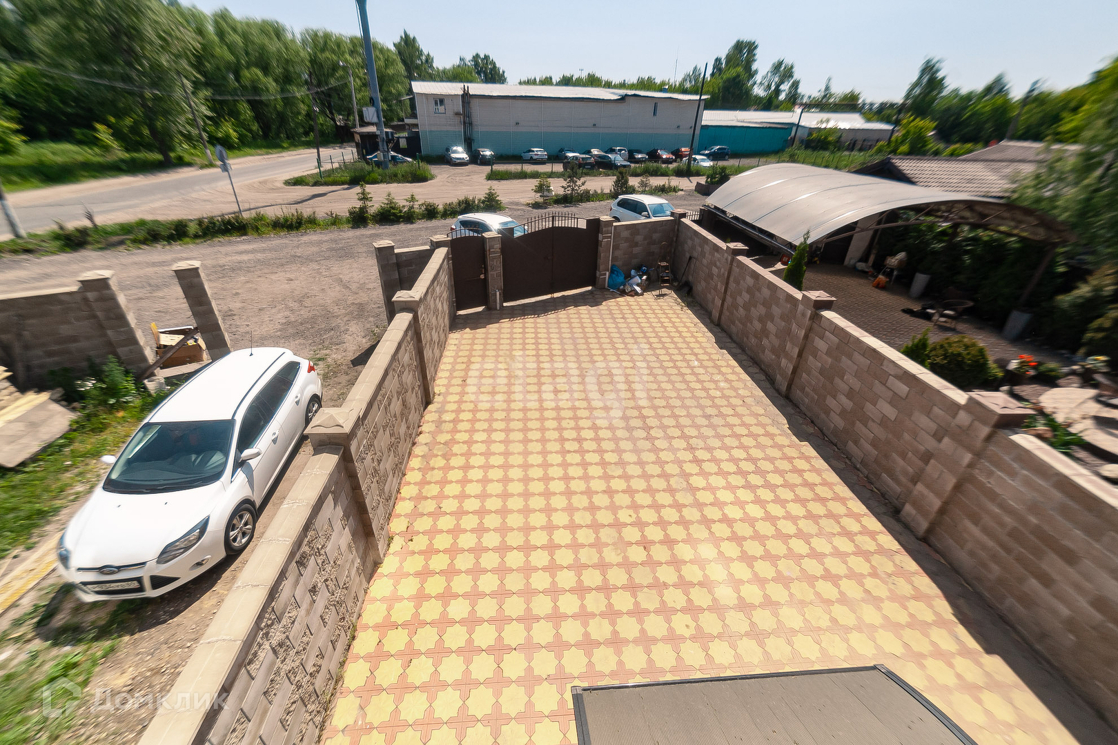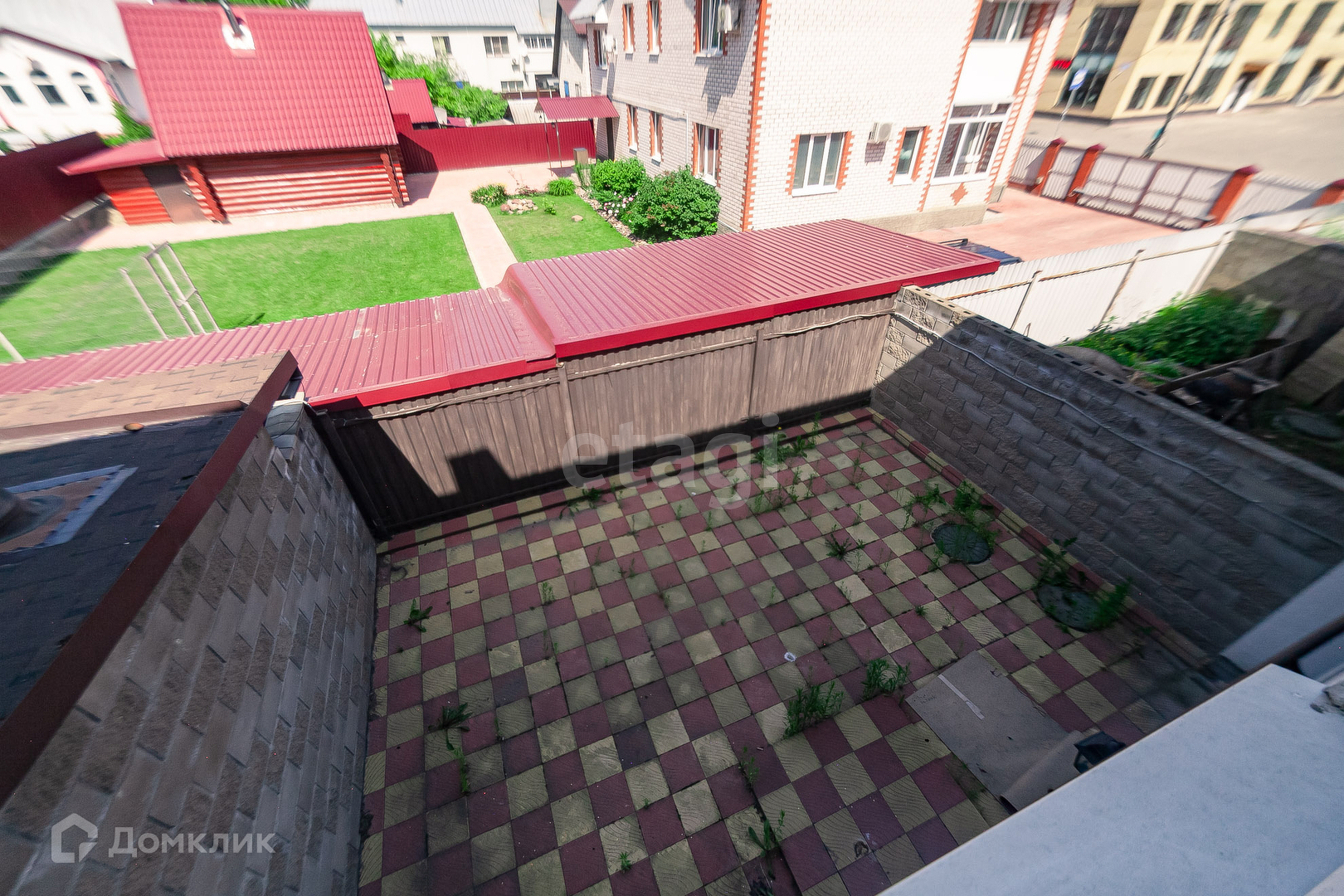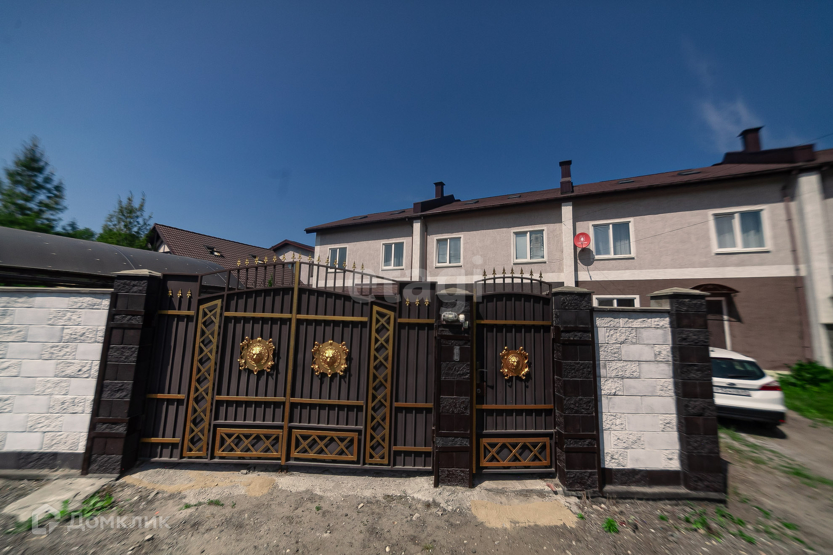 Трёхэтажный коттедж общей площадью 165 м² 2016 года постройки на участке 1,9 соток (ИЖС). есть зона парковки. Территория выложена плиткой. Задний двор в брусчатке.