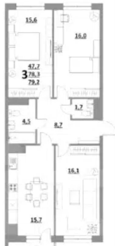 Общая площадь 77.5 м2