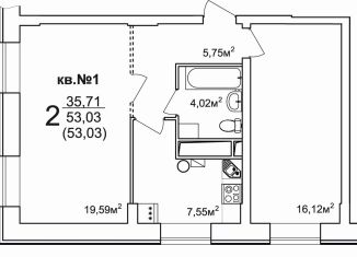 Продажа 2-ком. квартиры, 53 м2
