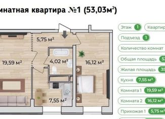 Продается двухкомнатная квартира, 51.8 м2