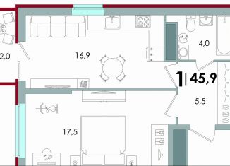 Общая площадь: 45.9 м2