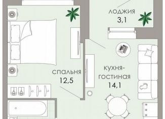Двухкомнатная квартира на продажу, 41.4 м2