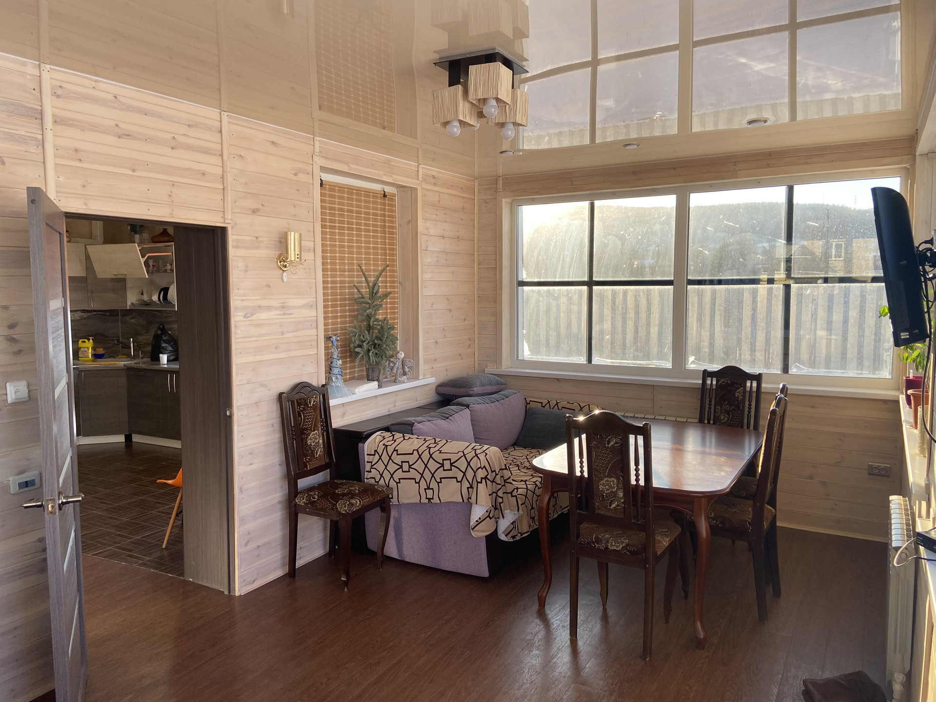 1 этаж: гардеробная для верхней одежды и обуви; санузел; постирочная (сушилка); гостинная совмещенная с кухней (45 кв.м); веранда с выходом на задний двор.