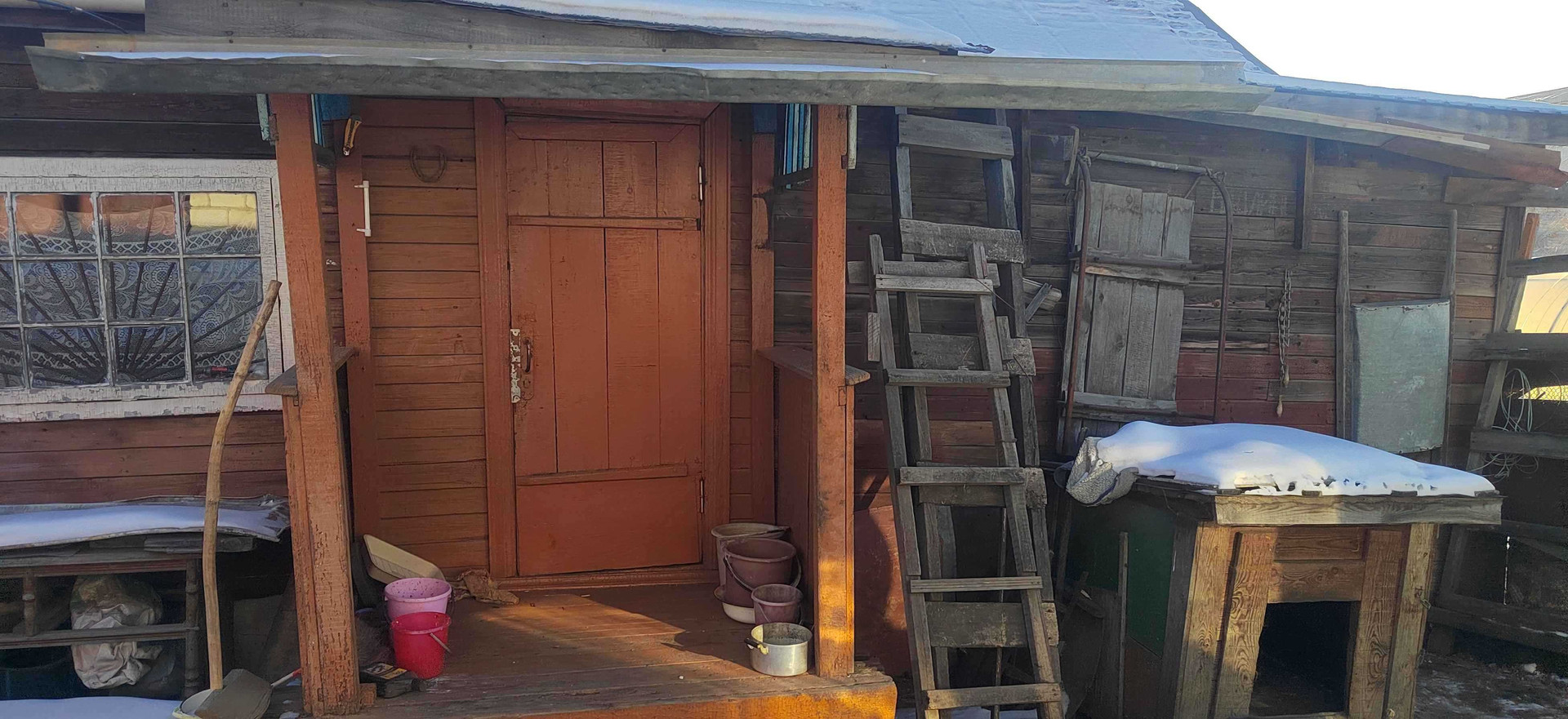 Деревяный дом, гараж на одну машину, грядки, теплицы поликарбонат. Дом заезжай и живи.