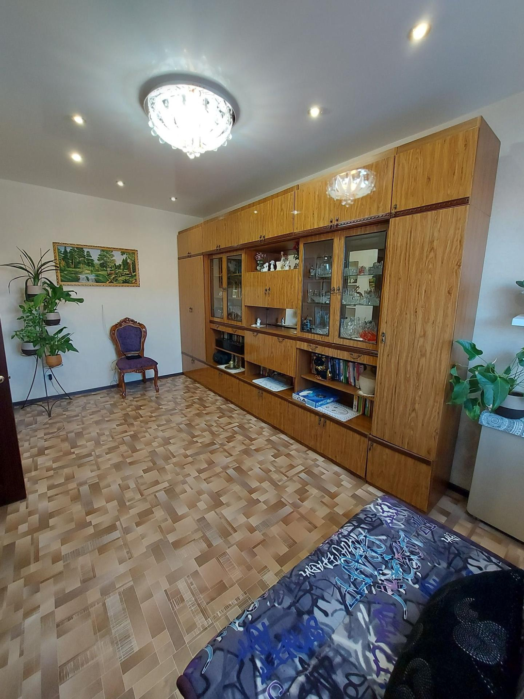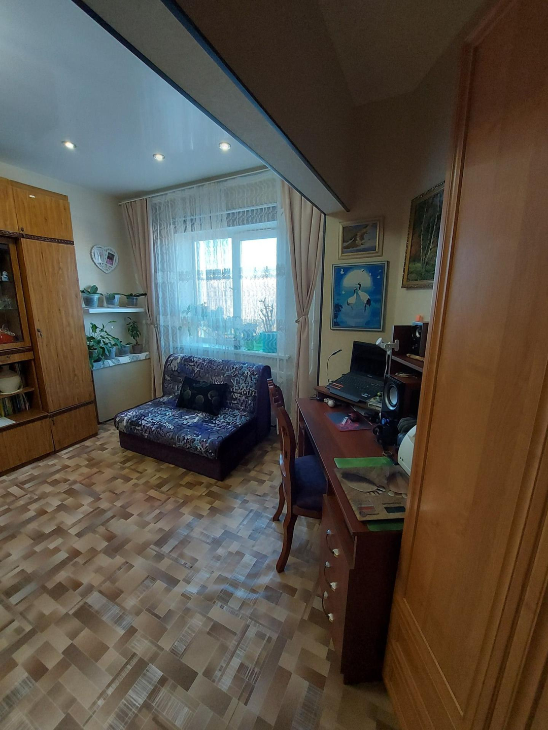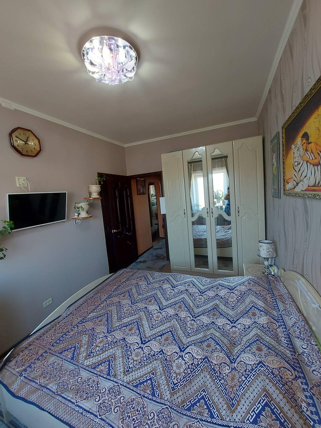 В спальне остаётся спальный гарнитур.  Есть большая встроенная кладовая.