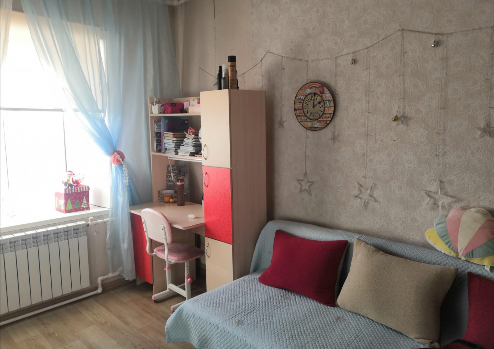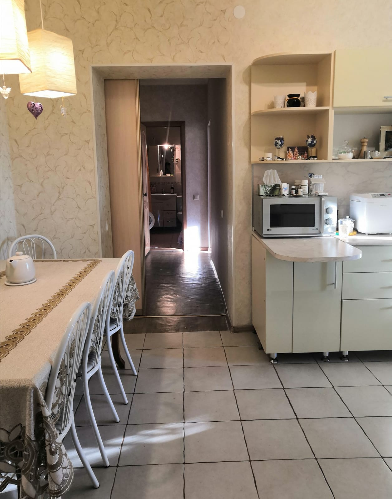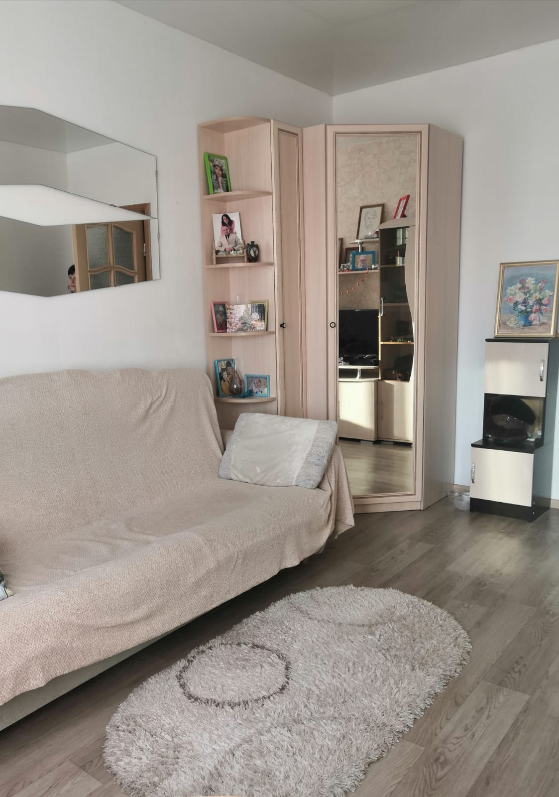 Сделан евроремонт, перепланировка ( большая кухня-столовая, бытовая, большая ванная с туалетом), есть небольшая лоджия. Документы по перепланировки оформлены, новый тех паспорт. Соседи очень хорошие. Рядом большой магазин, кафе, спортивный комплекс, школа, детский сад, рынок, аптека, овощной магазин, Валберис.