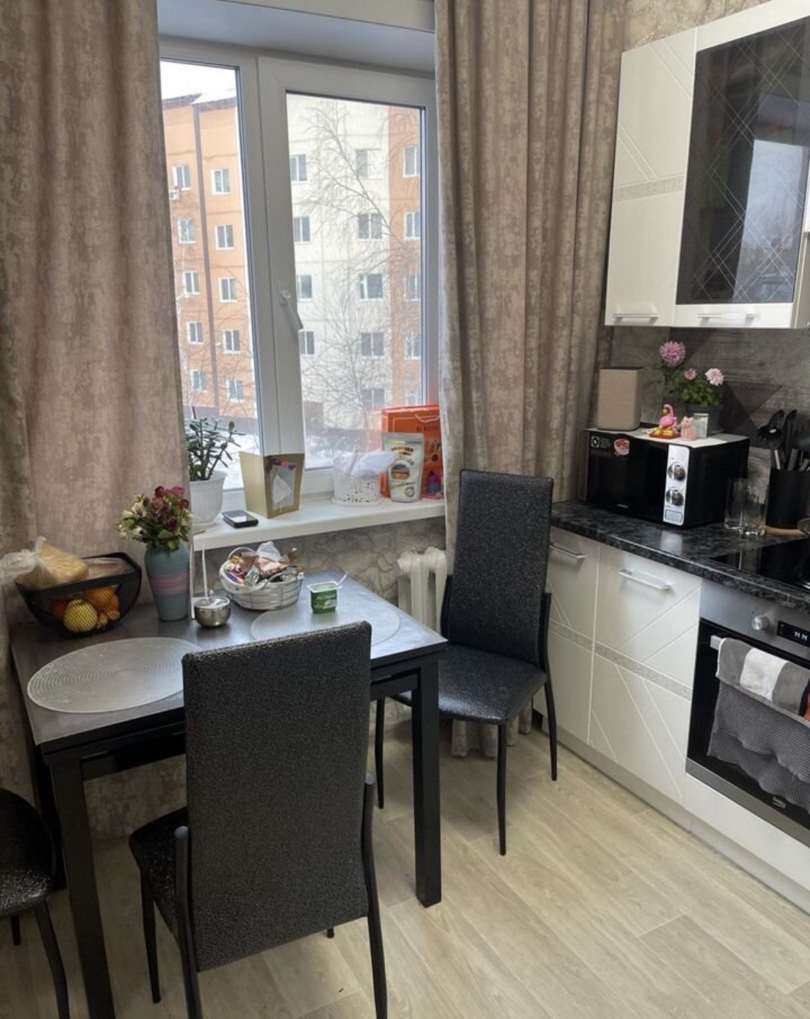 Цена указана вмести с мебелью, ( новая встроенная кухня, новый кухонный стол со стульями, новая стиральная машина, телевизор, диван, и т.д.
