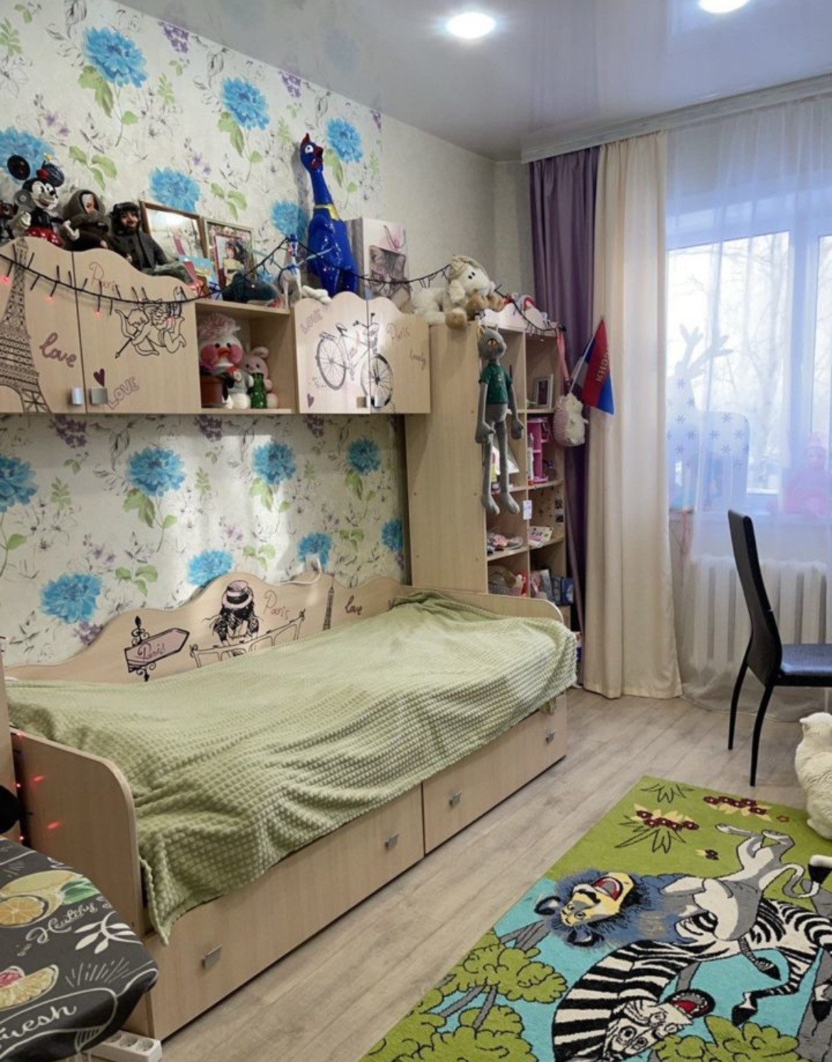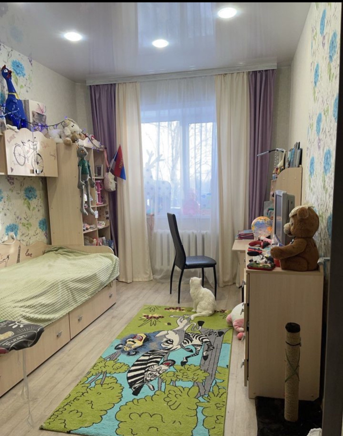 Квартира полностью мебелированная, на фото все видно, квартира теплая, уютная, магазины, школа, детский сад, площадь, река, все рядом.