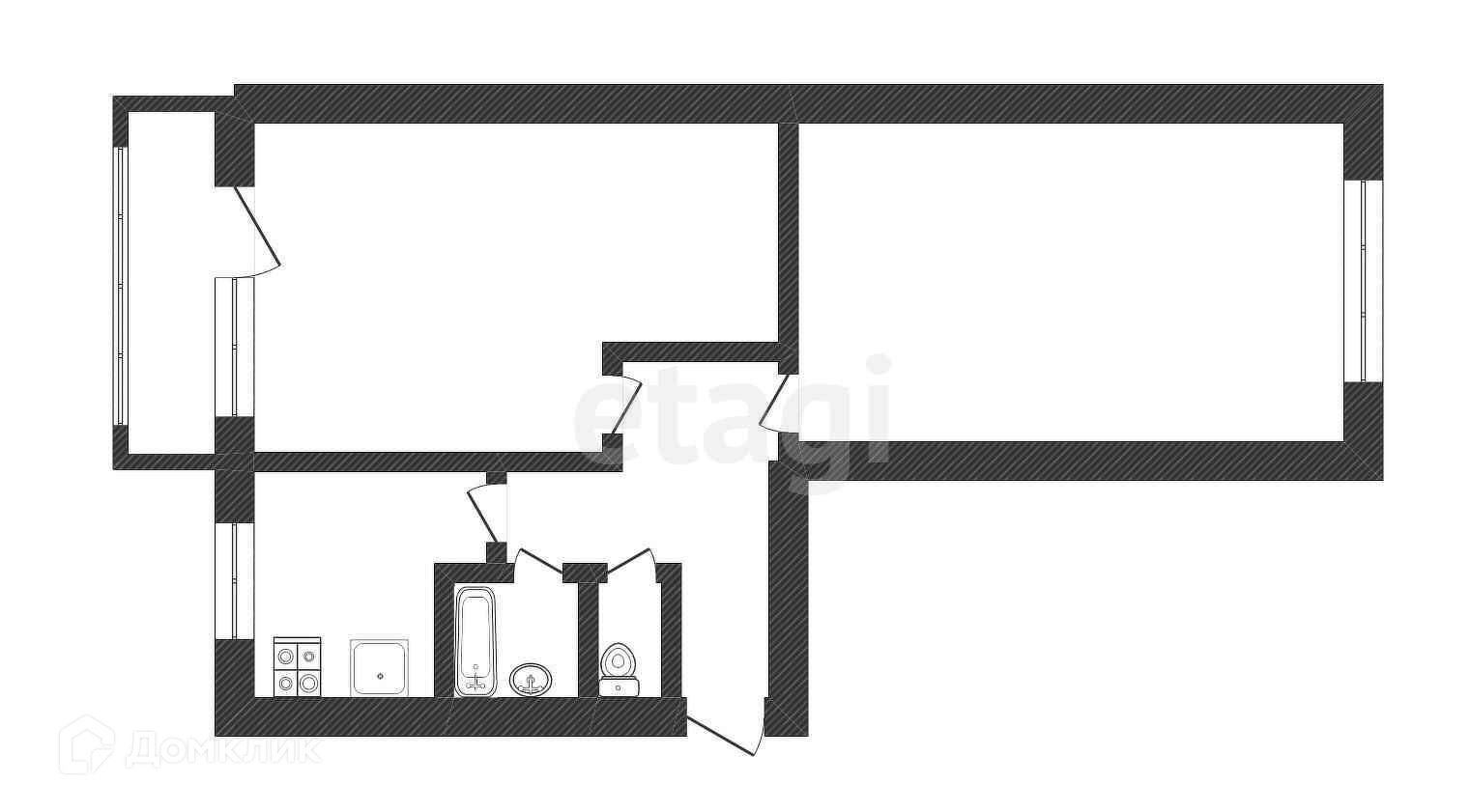 Общая площадь 43.6 м2