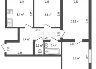 Общая площадь: 52.2 м2