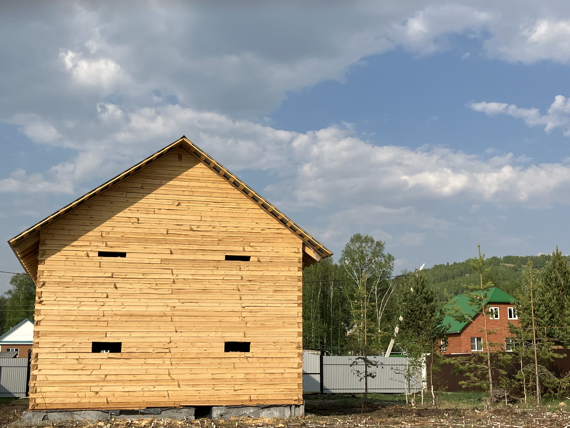 Недостроенный дом в живописном месте по улице Иремельская(возле поста ГАИ). Дом новый, требуется 2-3 мес.  на усадку, построен из бруса 150*150 проф. строителями с соблюдением всех технолог. правил(нижний венец, напольные лаги из лиственницы, «ласточкин хвост», пароизоляция, скользящие опоры для равномерной «усадки» стропил). Два полноценных этажа, общей площадью 150 кв. м. Газ, элект-во(220/380) возле дома. Планировка свободная, в доме межкомнатная перегородка из бруса от пола до «конька», полы застелены(доска 50 мм), фронтоны также из бруса.