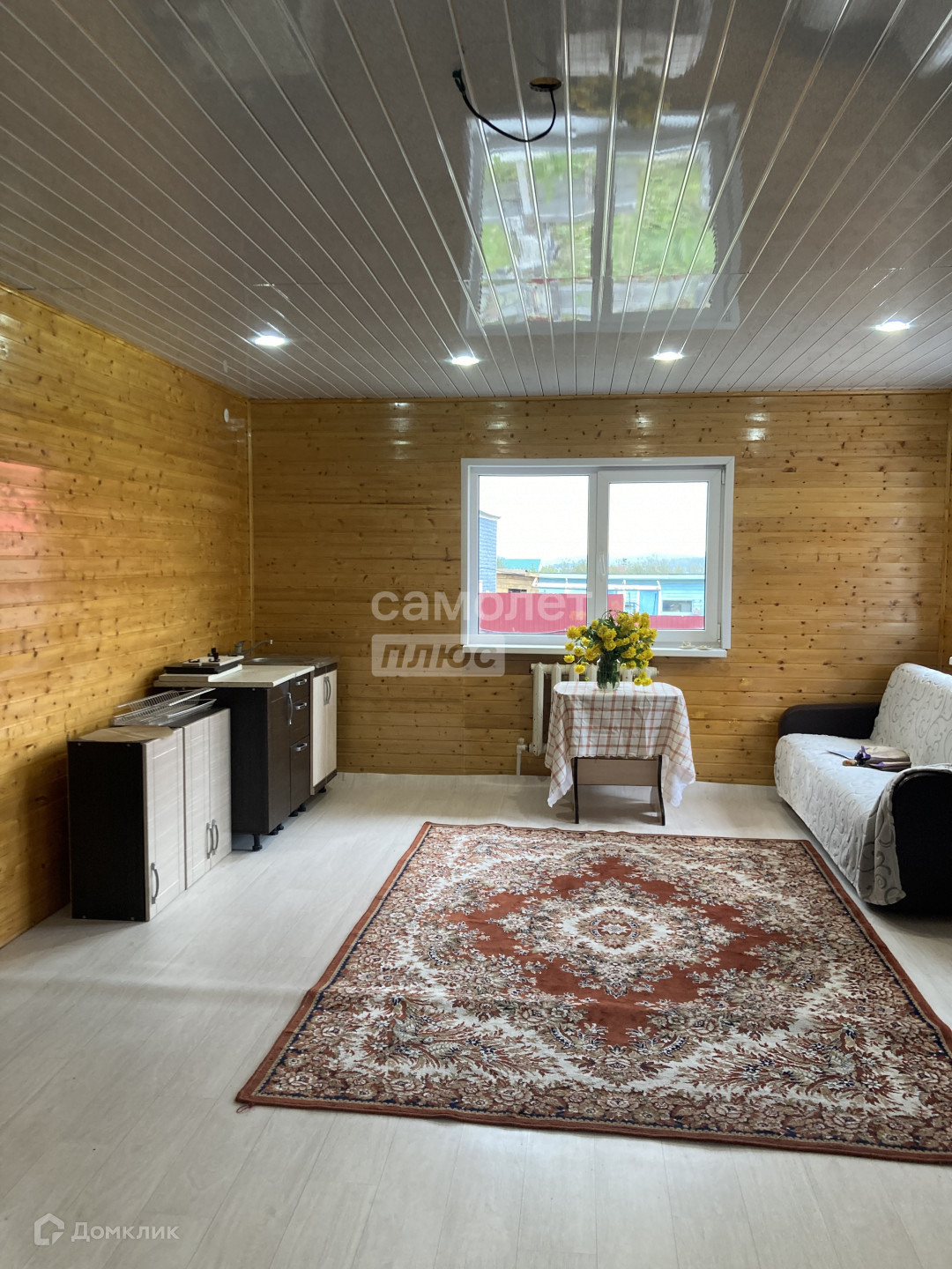 В доме просторная гостиная совмещена с кухонной зоной, спальня, большой (комфортный) санузел. А также мансарда (жилая) и лоджия. Имеются надворные постройки: летний домик, сруб (8 кв.м)- свободное использование.