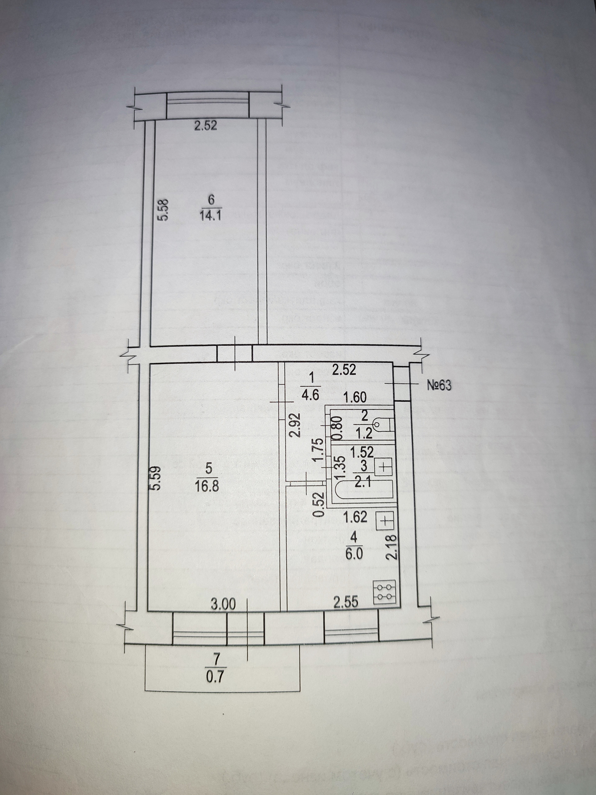 Общая площадь 44.8 м2