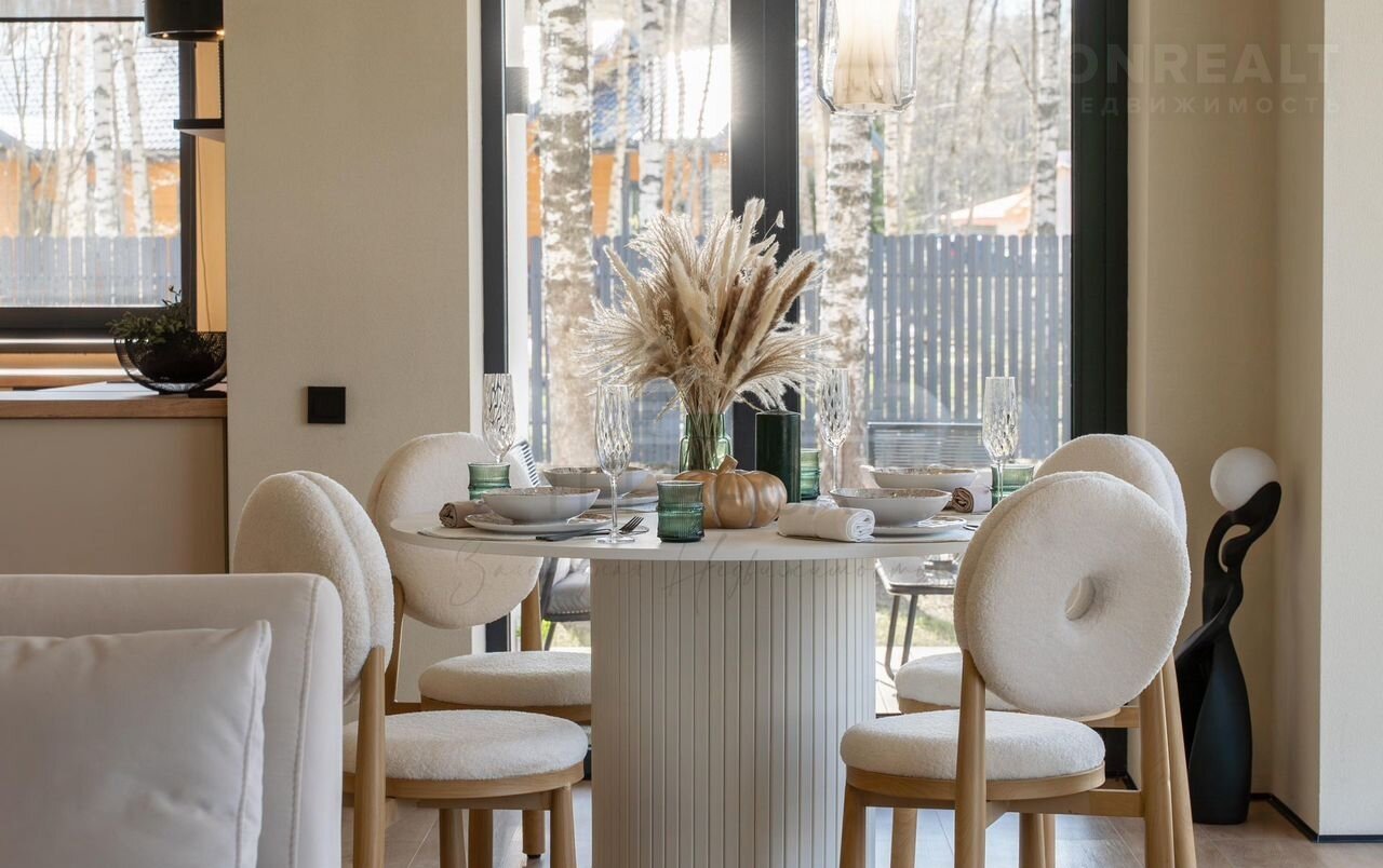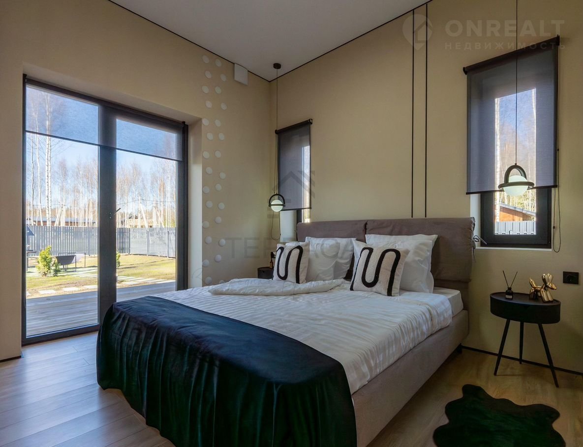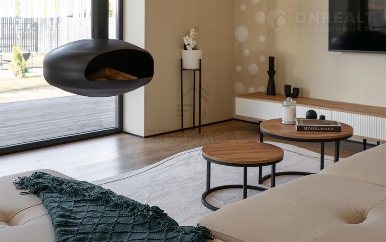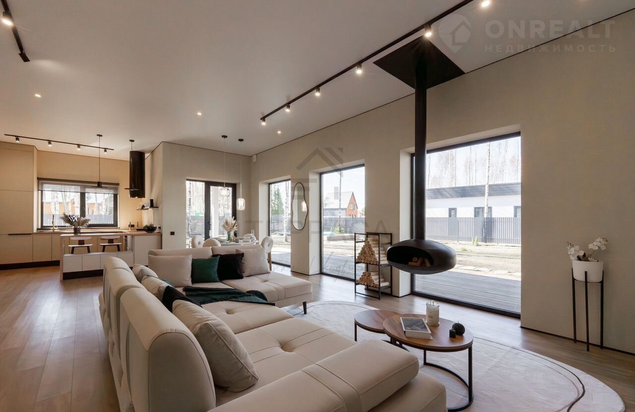 Дом с дизайнерской отделкой, где каждая деталь выдержана в единой утонченной эстетике. Просторные светлые комнаты с панорамными окнами и высокими потолками дарят ощущение свободы, а дровяной камин наполняет пространство живым теплом и атмосферой уюта. Для настоящего комфорта в доме предусмотрена сауна для расслабления и просторная крытая терраса — идеальное место для неспешных ужинов или утреннего кофе на свежем воздухе. На участке расположен бассейн - личный оазис свежести и покоя, который превращает каждый день в курорт.