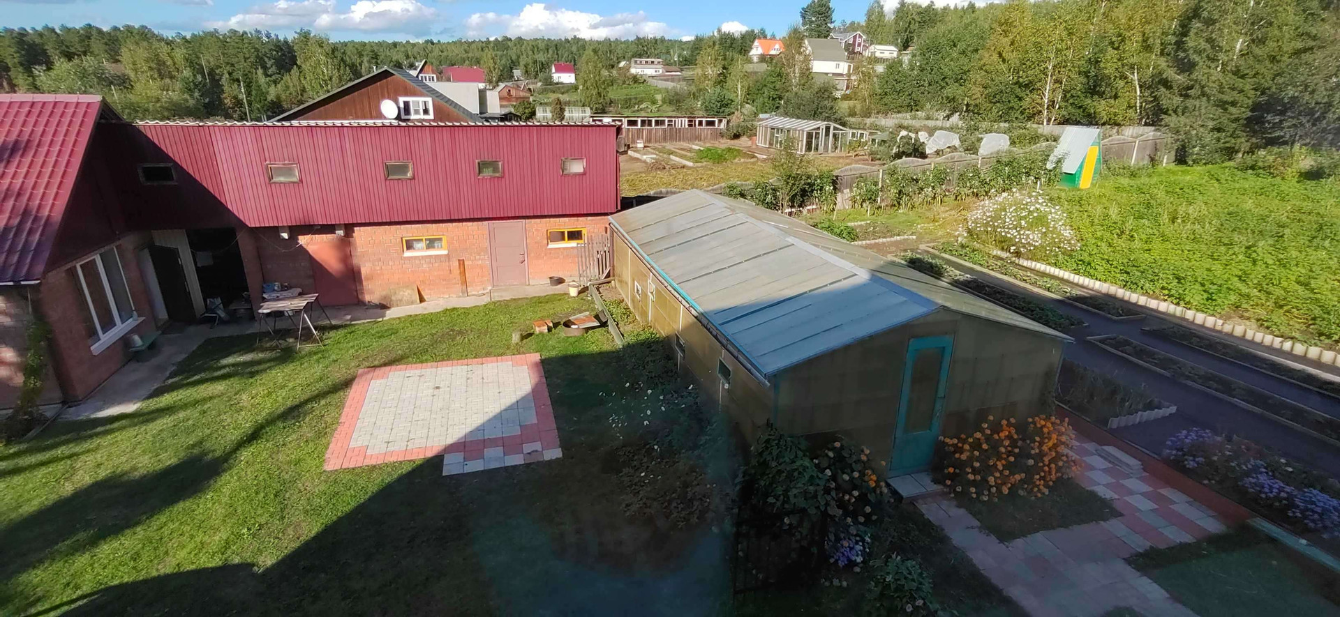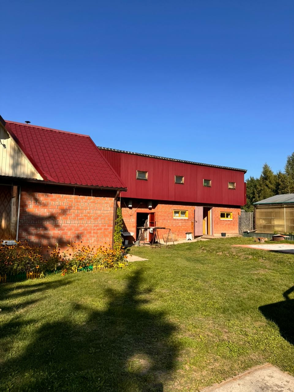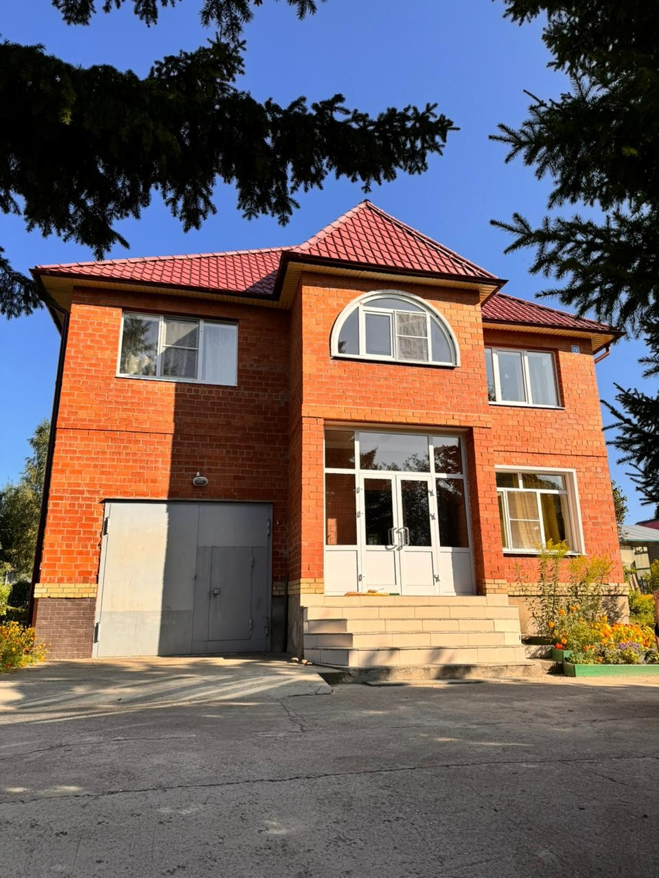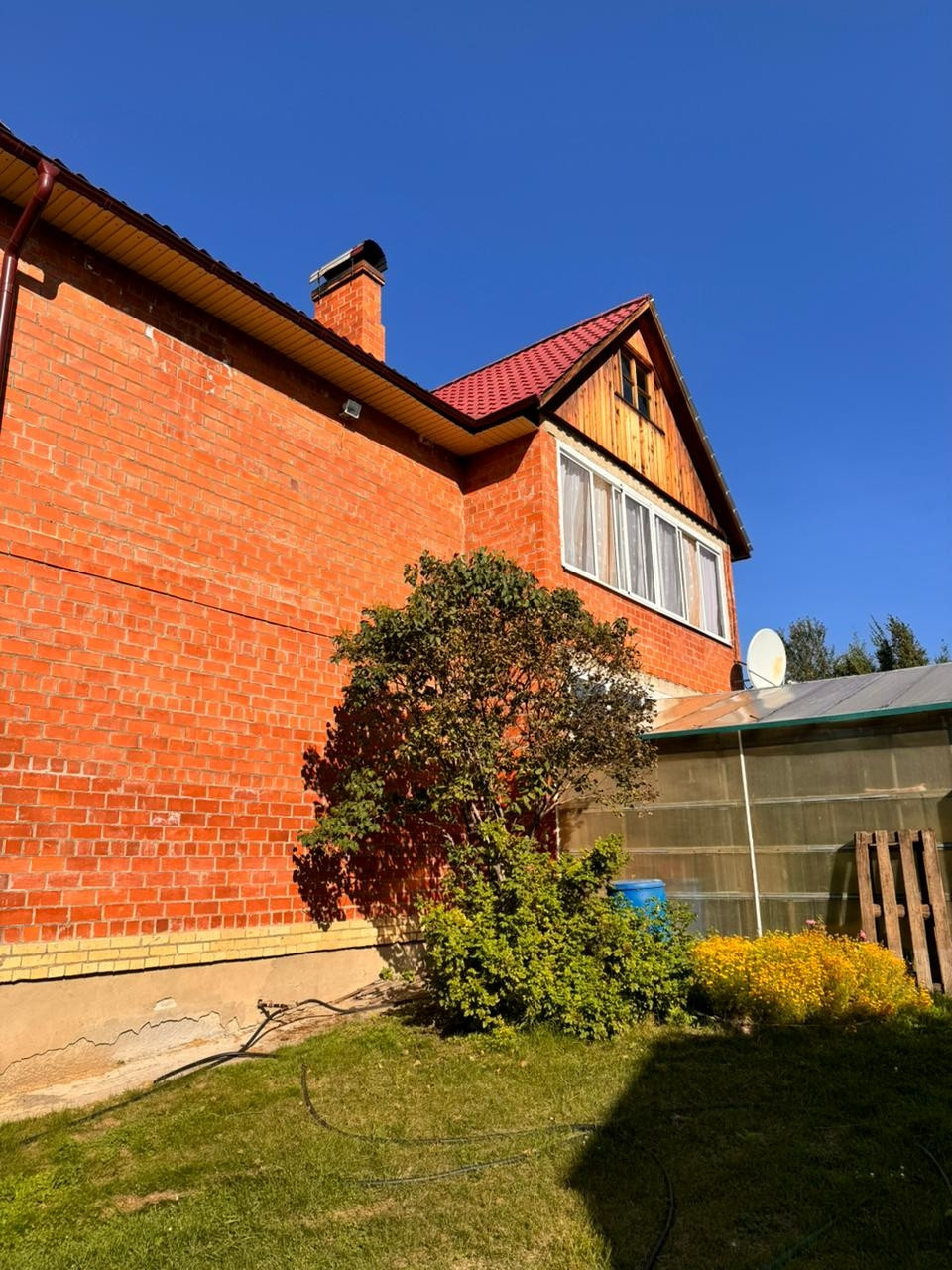 Дом на участке 25 соток, 2 этажа, с гаражом на 1 машину, цоколь, в цоколе сауна, бассейн, 5 комнат, кухня, на участке 2 теплицы, баня с гаражом на 1 машину, другие постройки