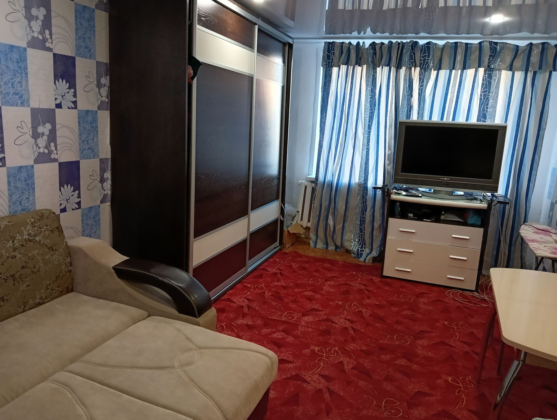 Уютная однокомнатная квартира 43м в центре города с ремонтом поменяны пластиковые окна, счётчики, потолки, тёплый пол, техника и мебель остаётся при желании. Холодильник, стиральн. машина, шкафы, диван кровать, кухонный гарнитур.
