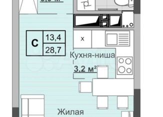 Продам квартиру студию, 29 м2, улица Ухтомского, 12