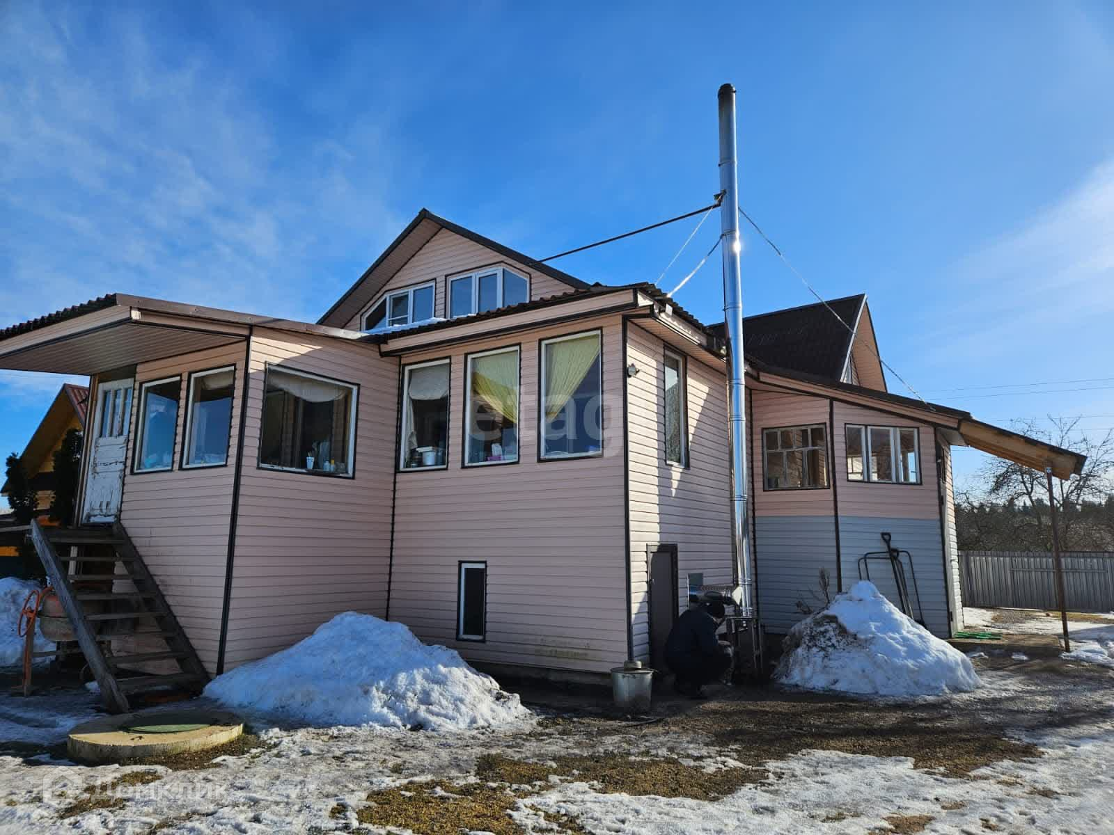 Дом построен из бревна пяти стенок, также имеется пристройка каркас. В 2019 году была проведена реконструкция. Внешняя сторона дома имеет утепление, состоящее из мин.ваты, гидроизоляции, OSB, и облицована сайдингом. Внутренняя часть дома обшита вагонкой.